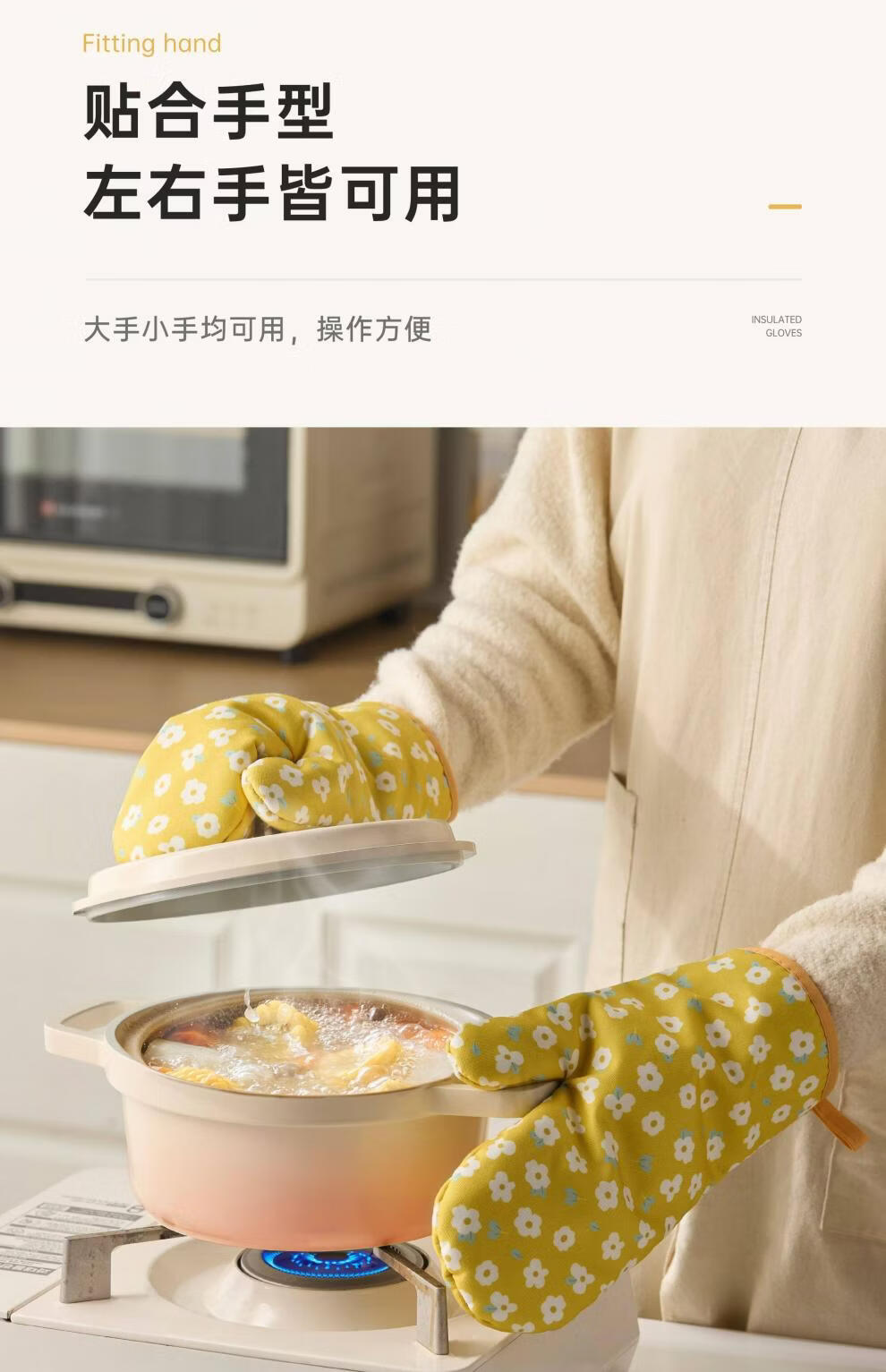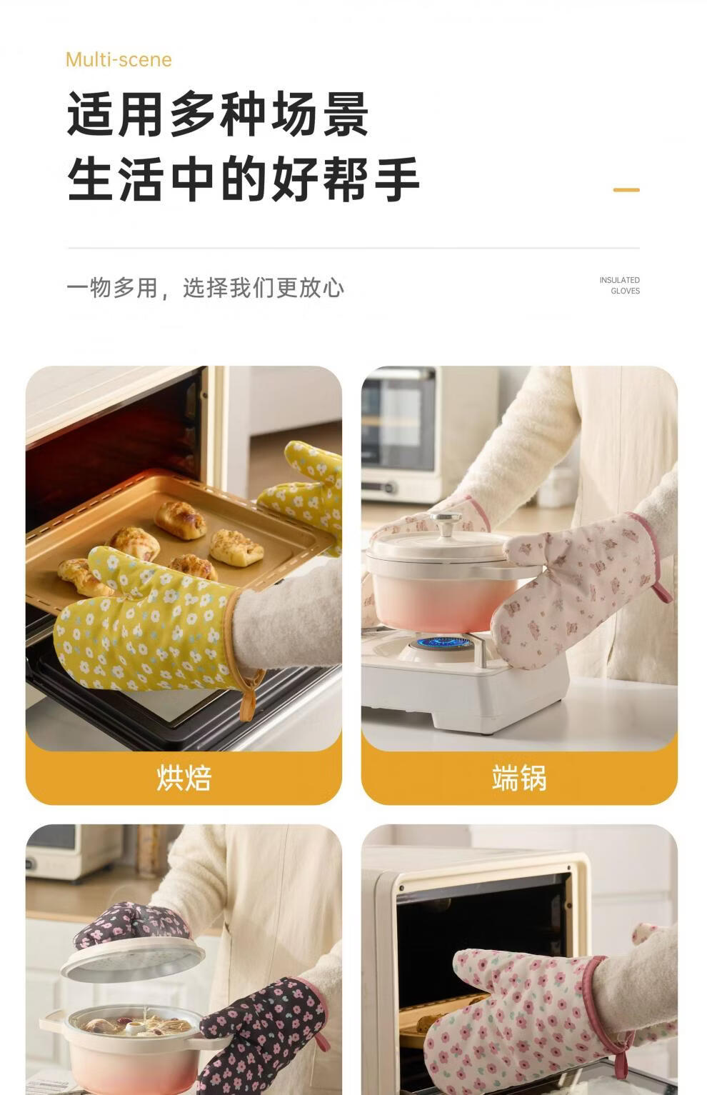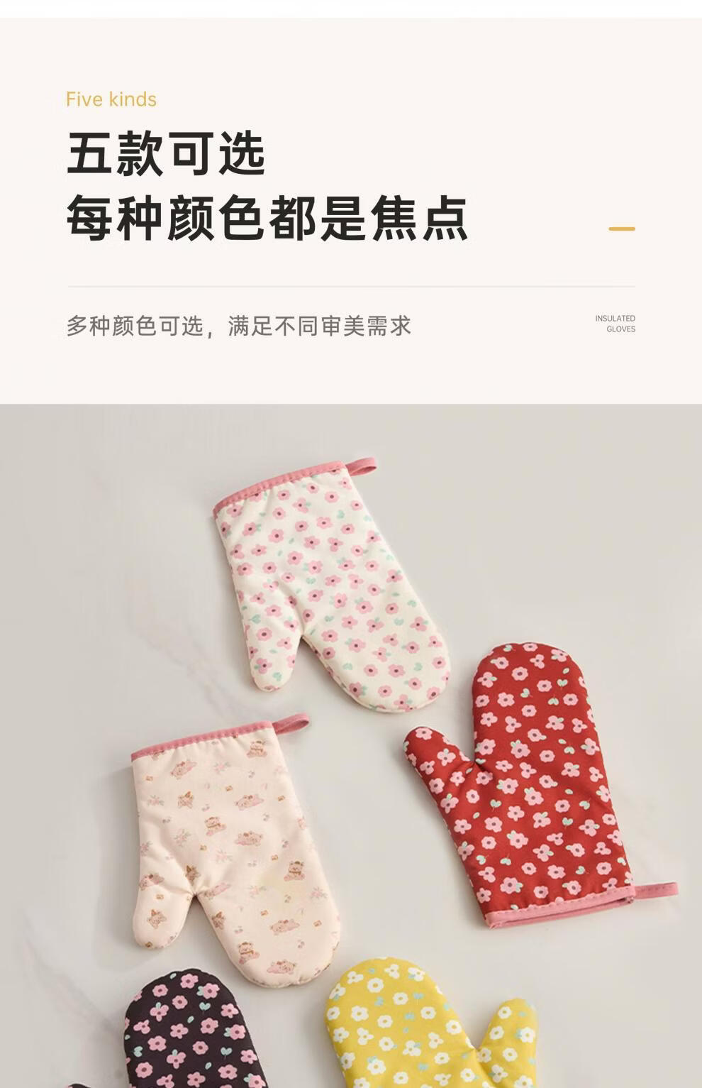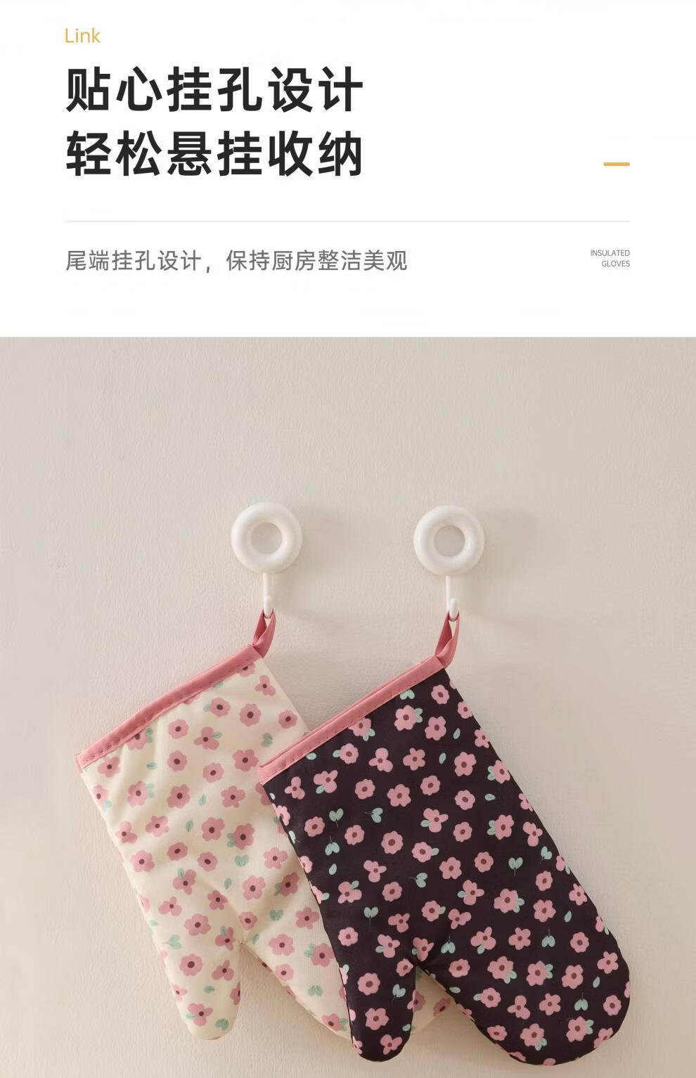 Jingdian anti-scalding gloves thickened insulated kitchen oven special microwave baking gloves Luo Qifuli flower baking gloves 2 pack