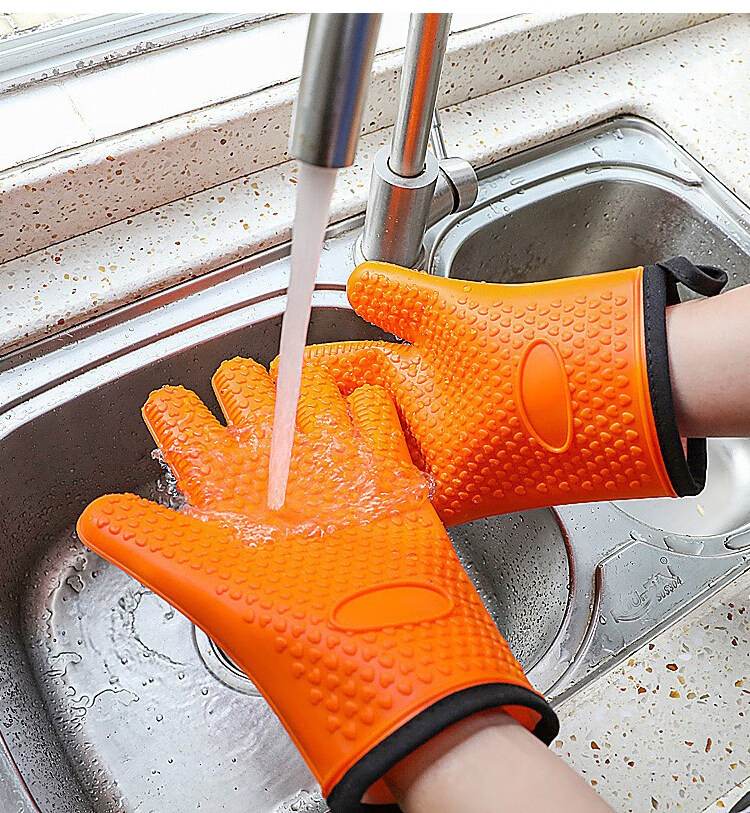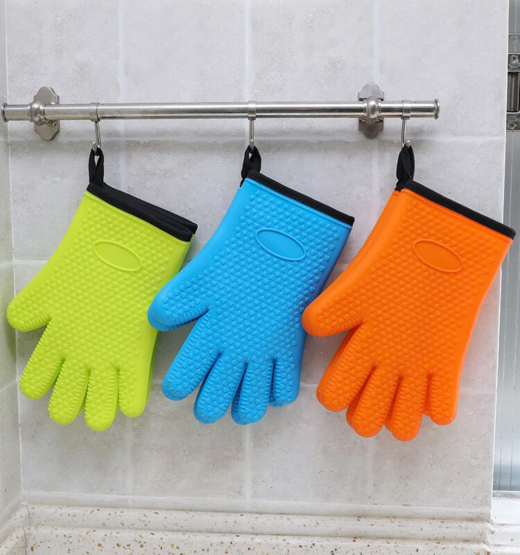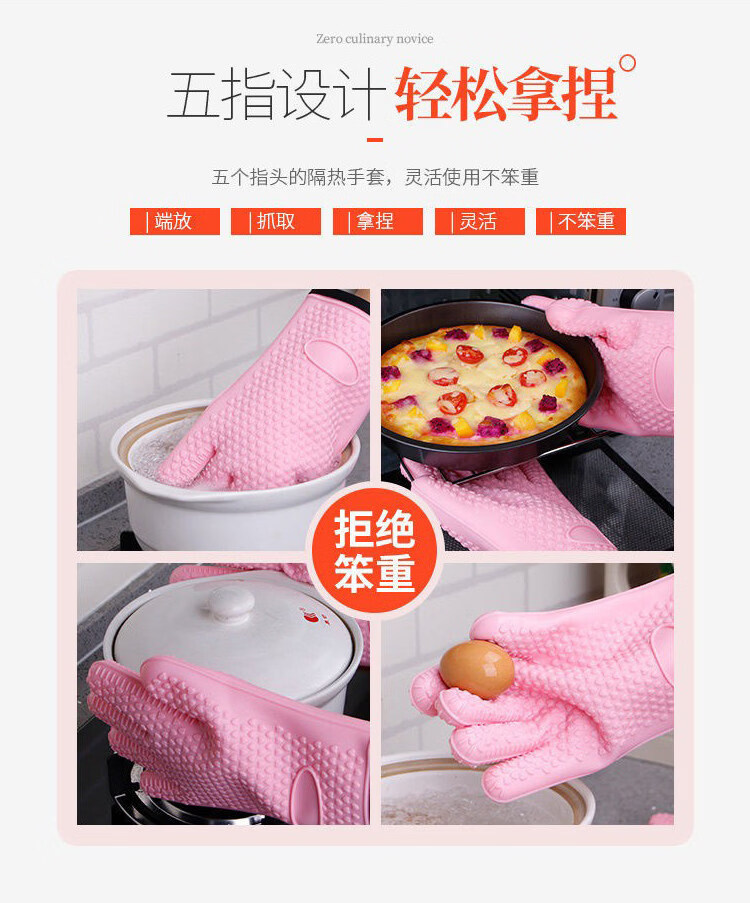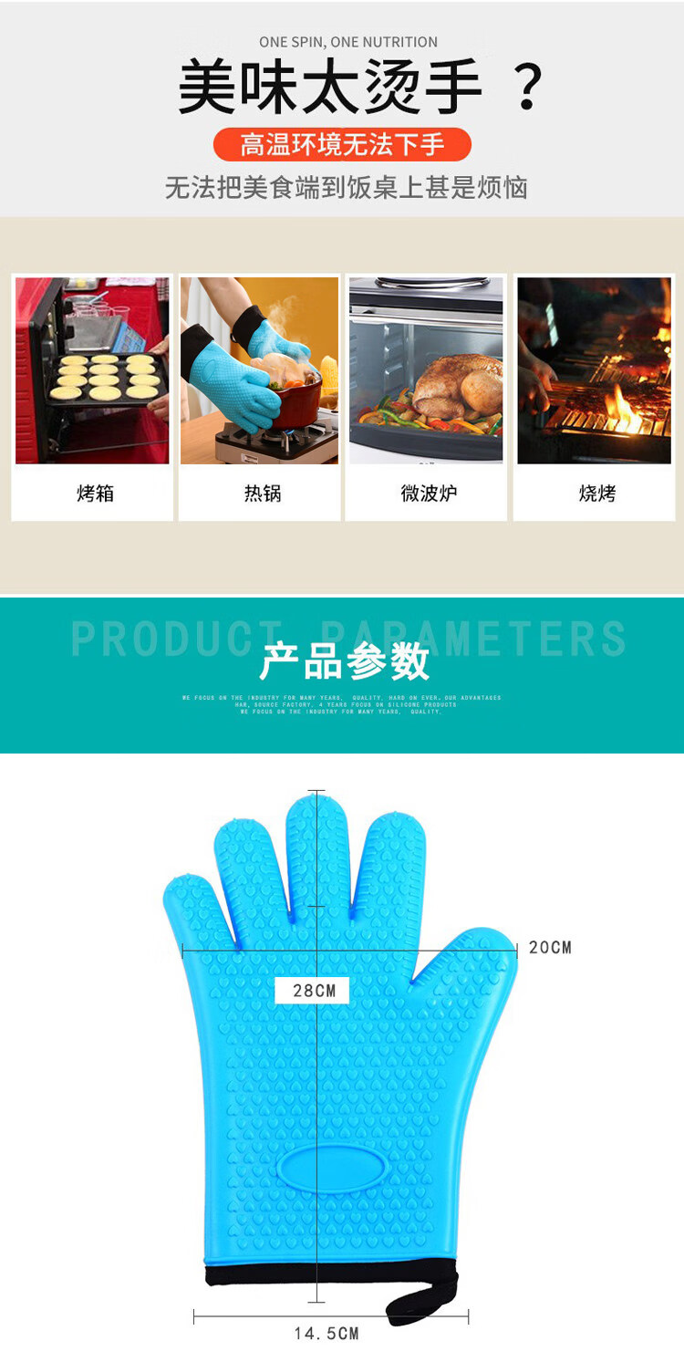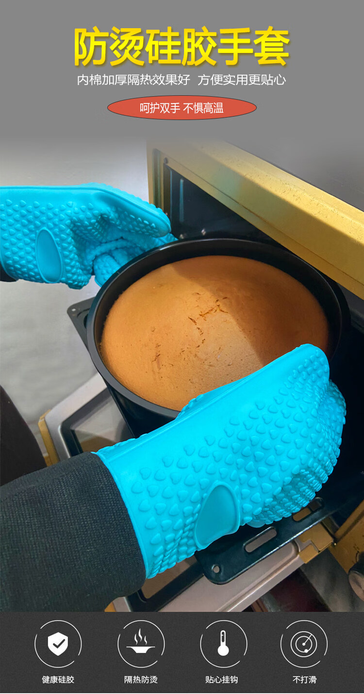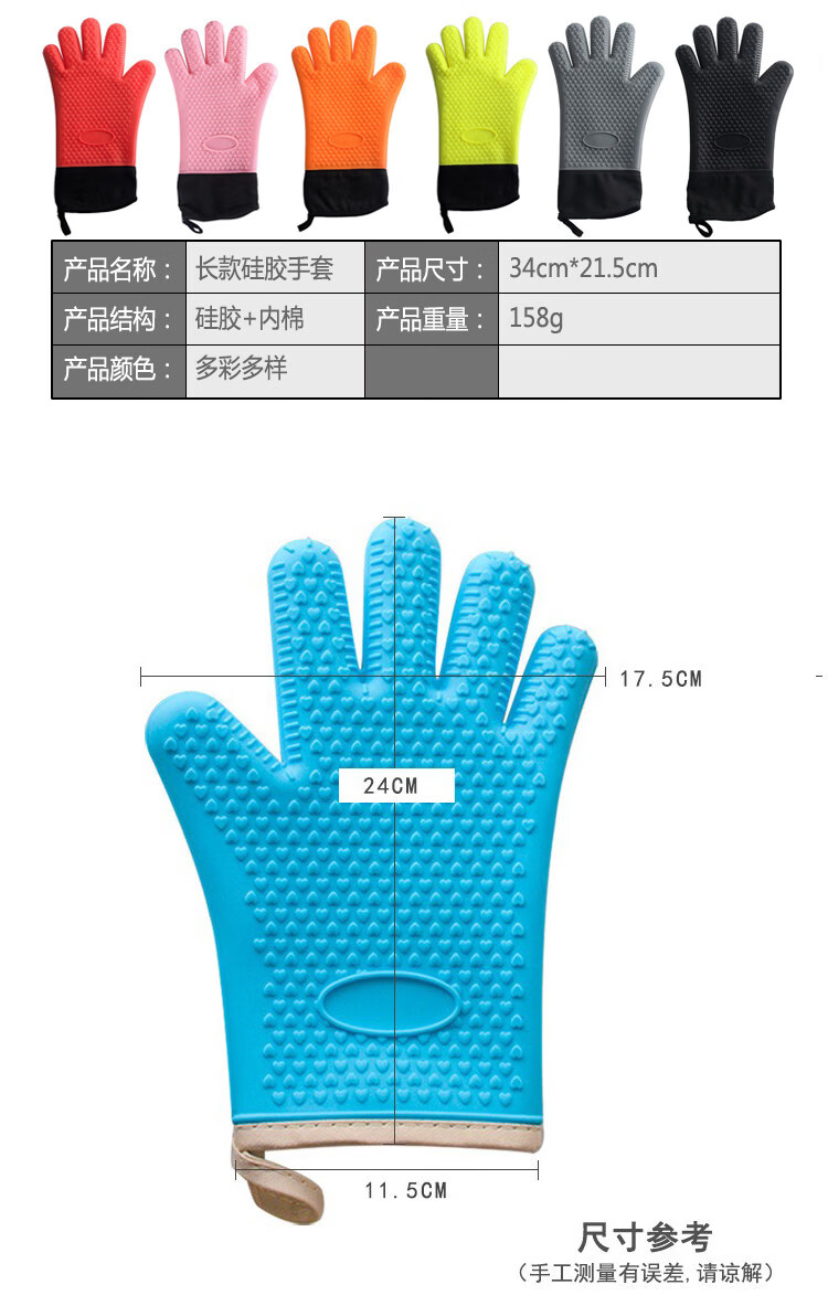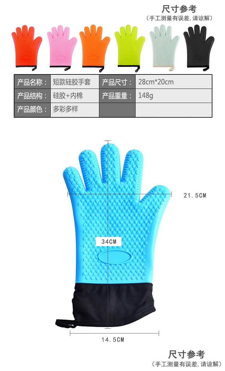 Jingdian Home Kitchen Long and Short Microwave Oven Oven Pot End Heat Insulating Gloves Children's Short Cotton Lined Anti-Scald Insulated Silicone Short Cotton Lined Silicone Anti-Scald Gloves Single Color Randomly Available