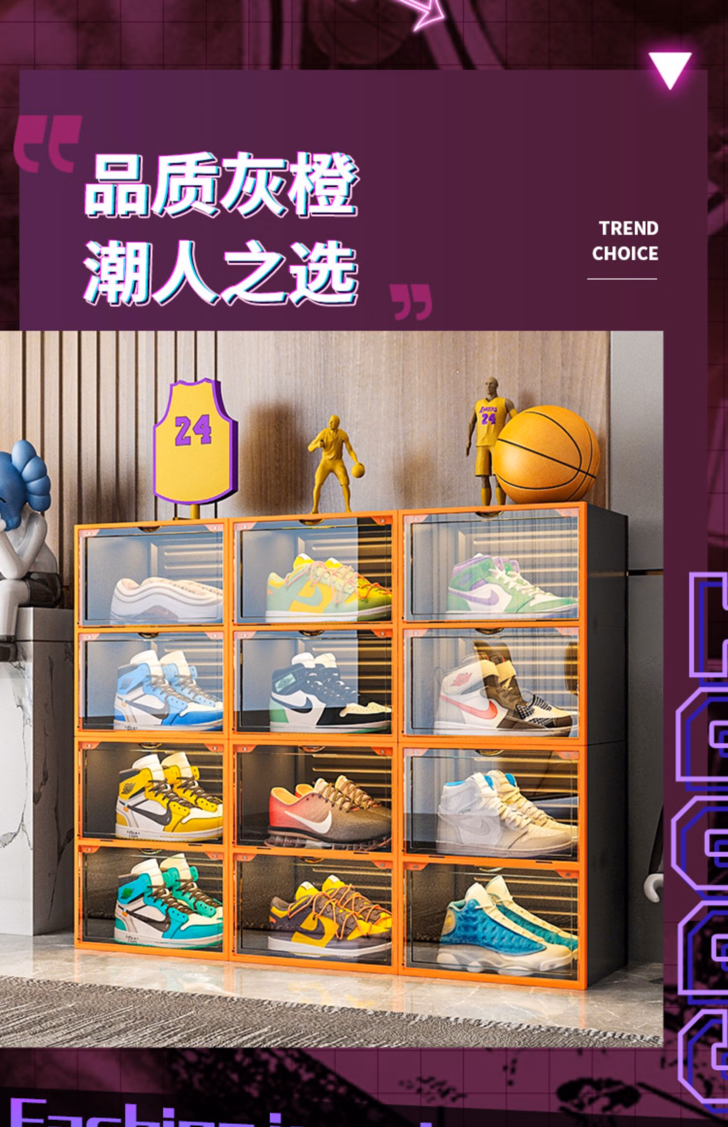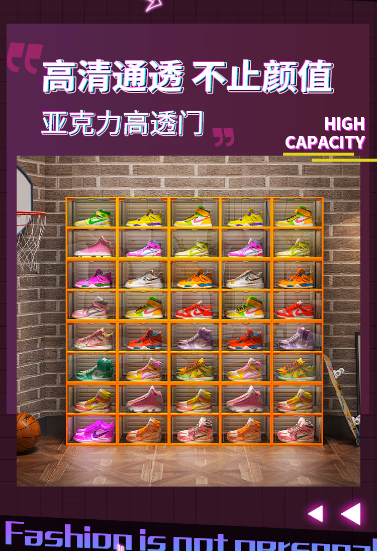 Sailoto Xianjing shoe box shoe storage box transparent sneakers anti-oxidation imitation acrylic internet celebrity shoe wall folding pull-out type high quality gray orange 4-pack double magnetic door anti-oxidation