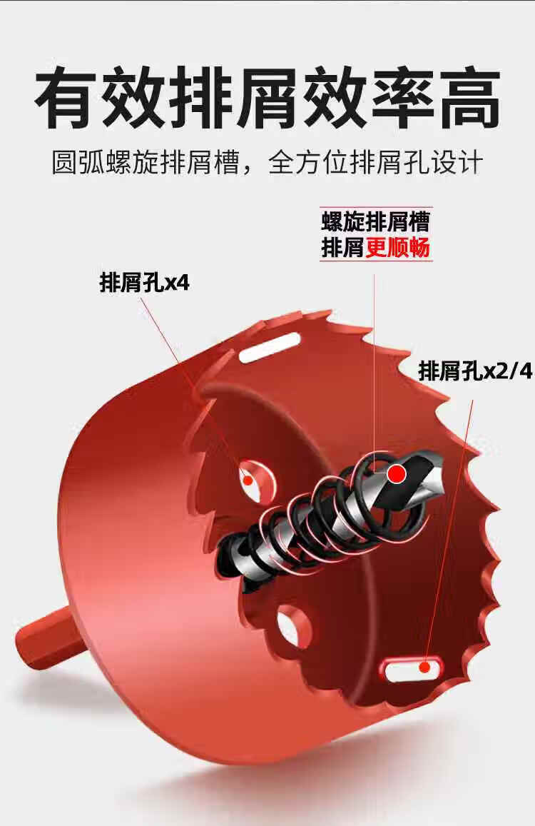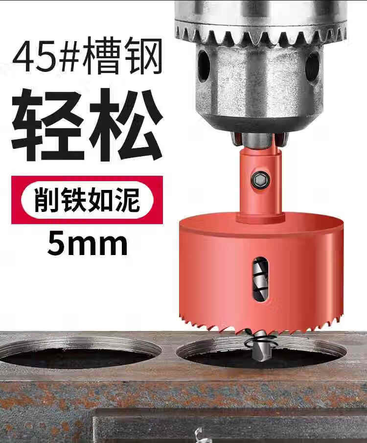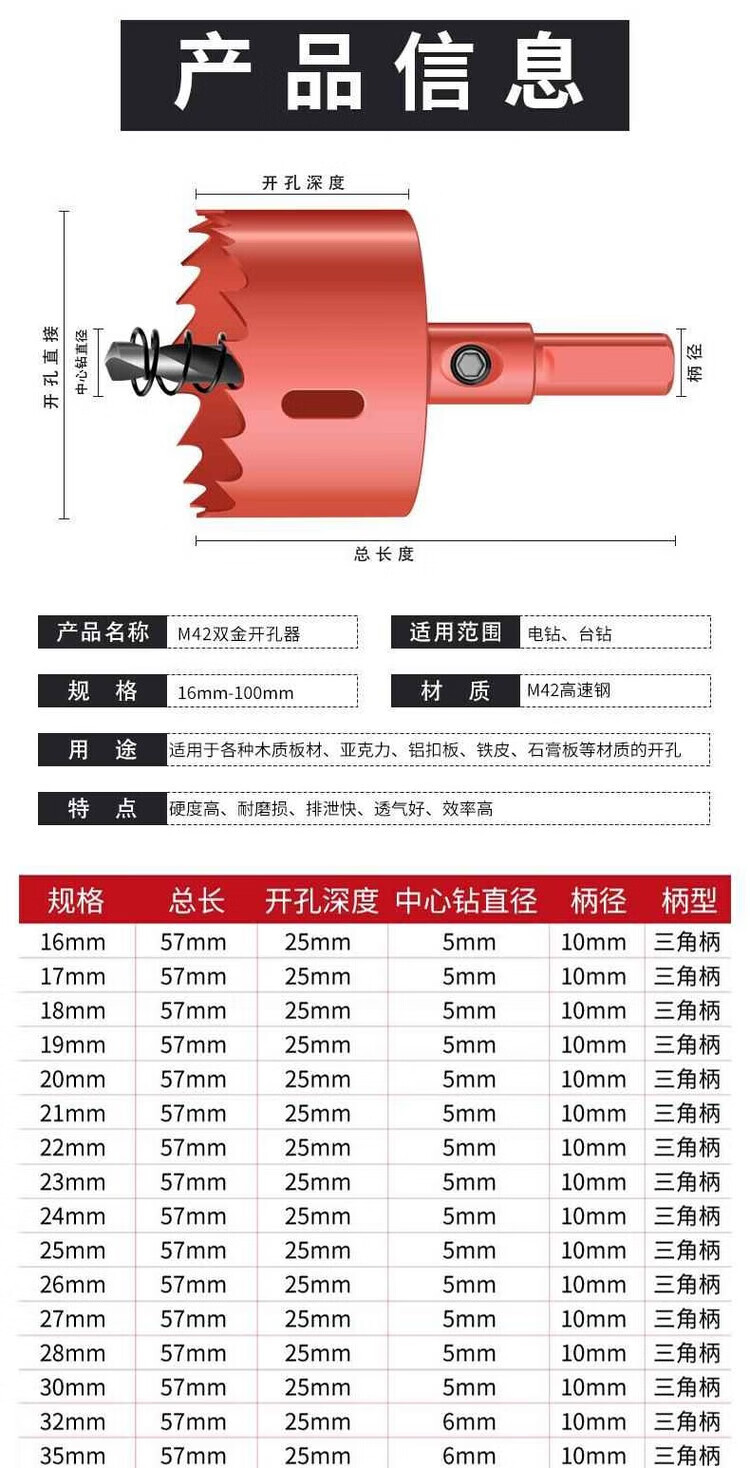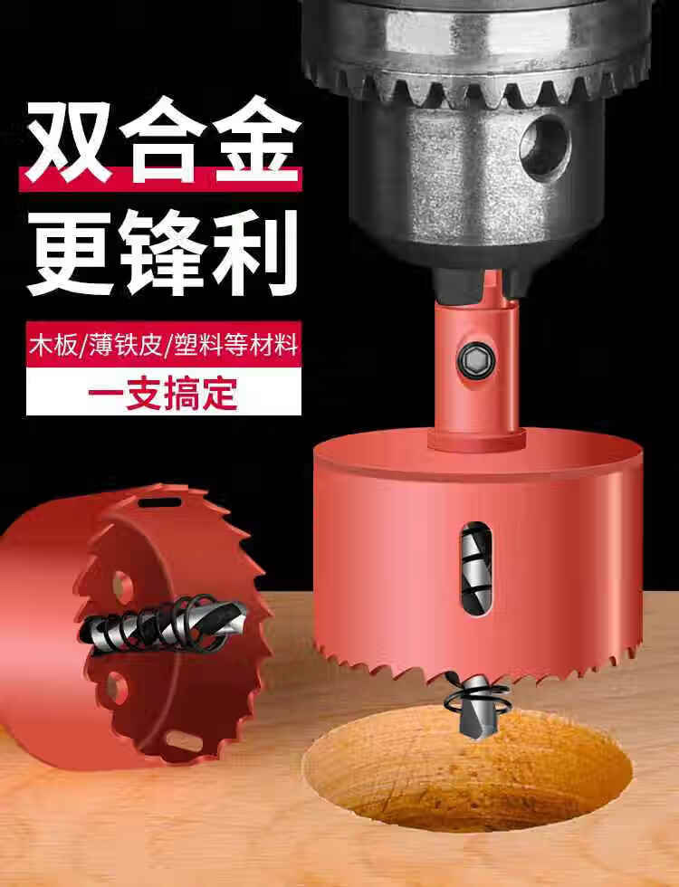 Hole opener woodworking complete set of bi-metal multi-functional punching gypsum board iron sheet plastic PVC reaming red level 16-piece set including tools