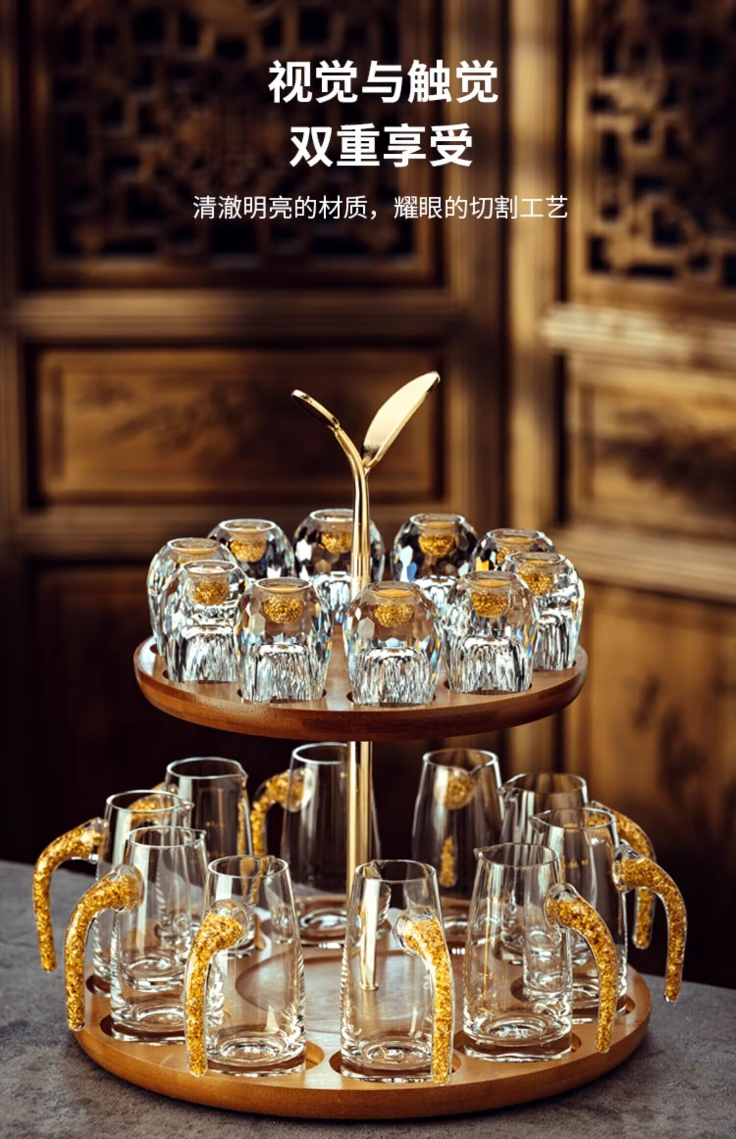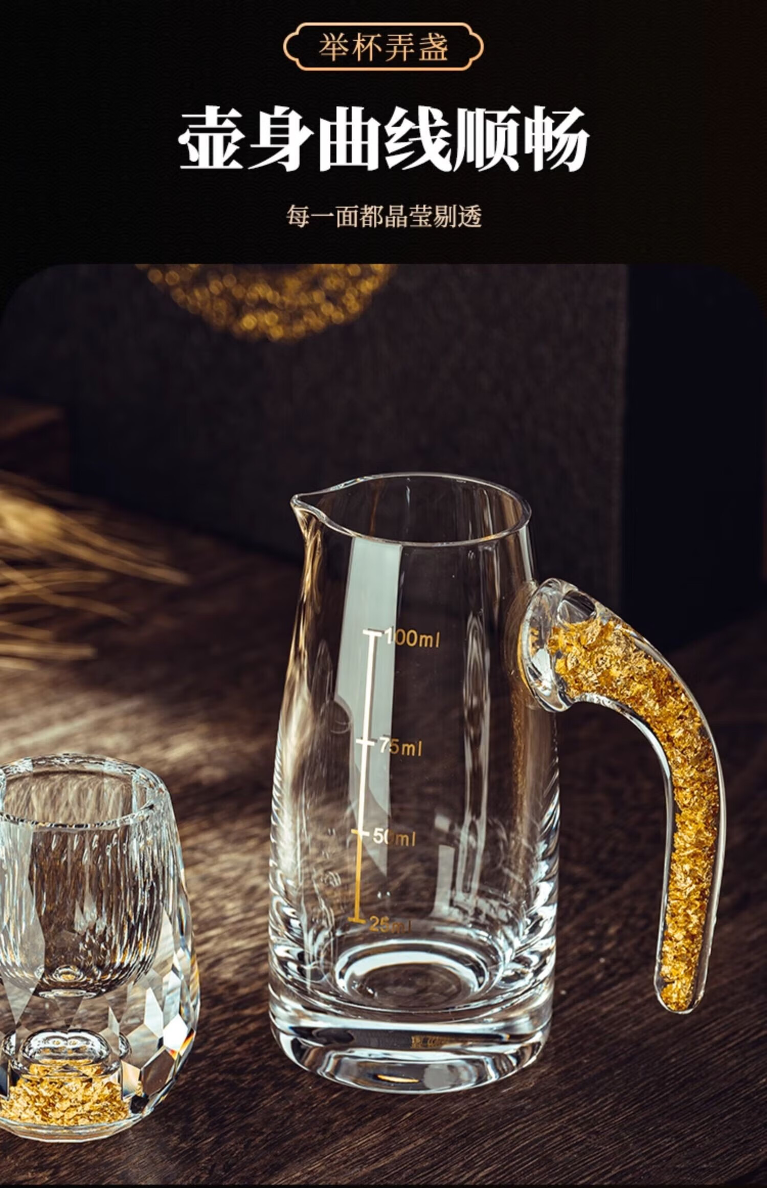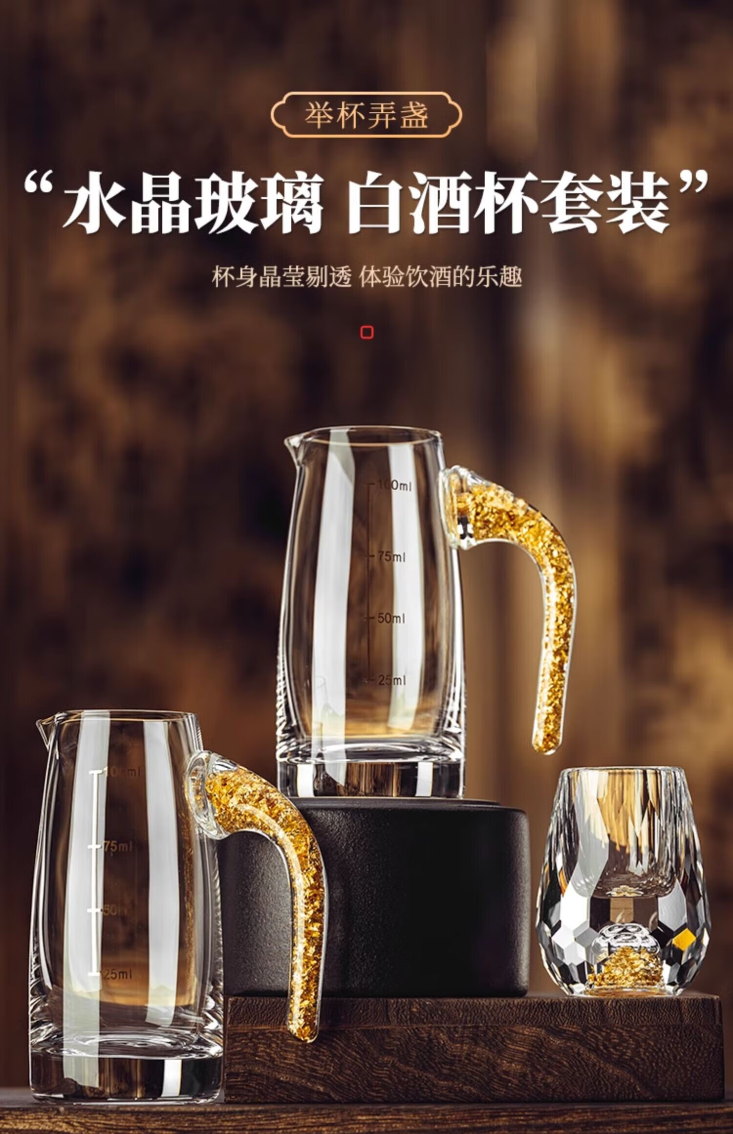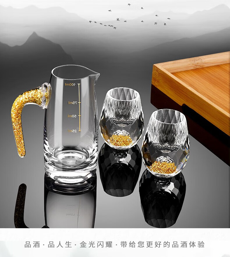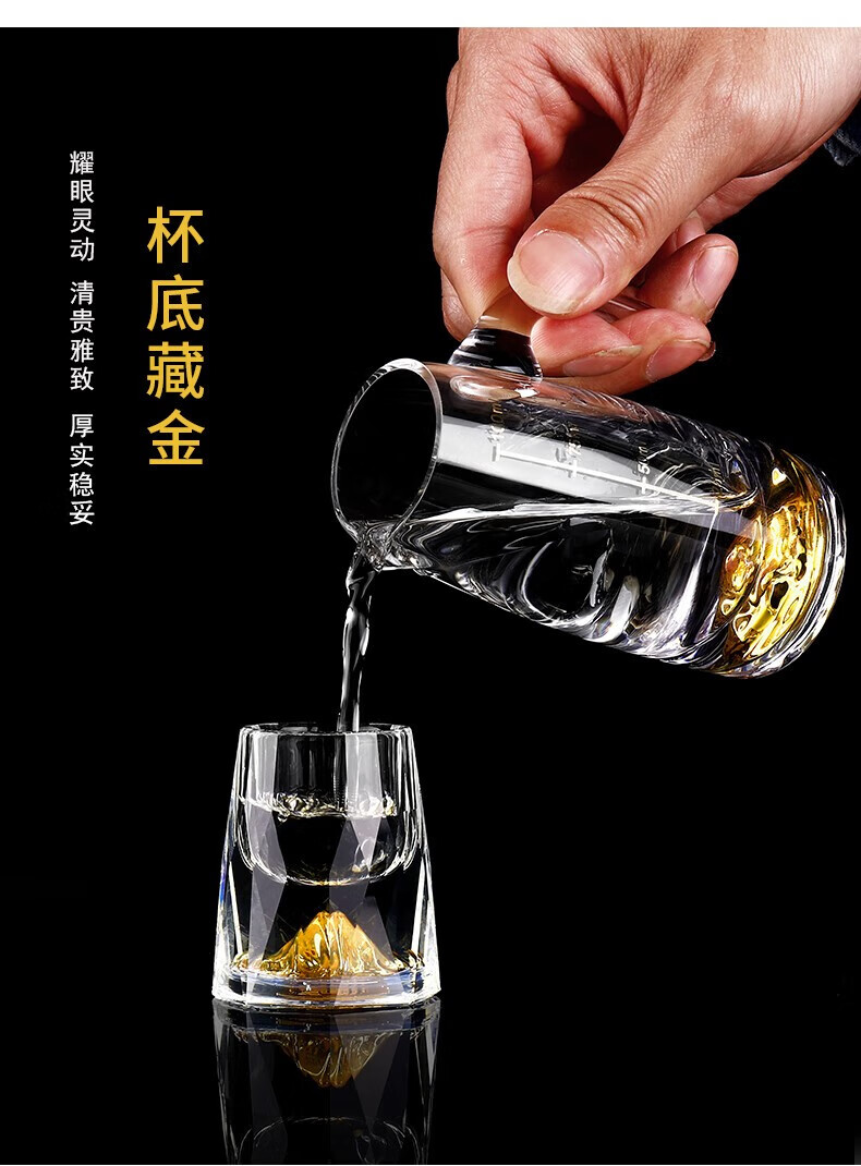 Diamond gold foil gold mountain white cup set creative household crystal glass divider small cup strong cup diamond gold foil cup 15ml six pieces