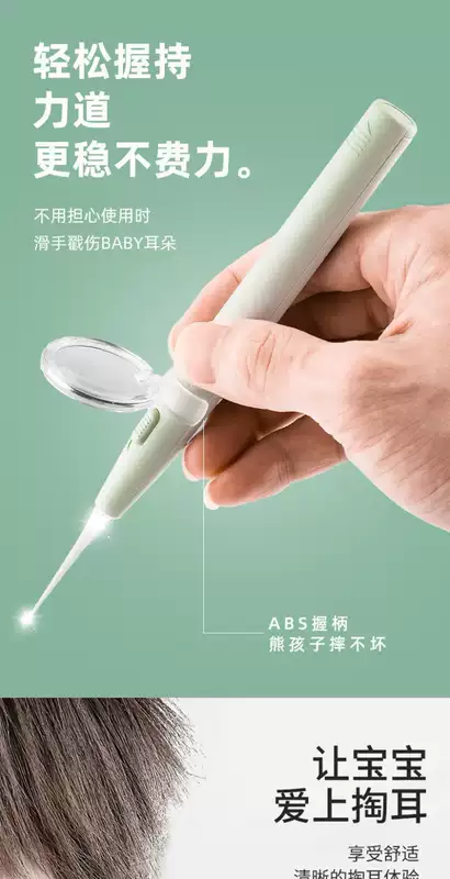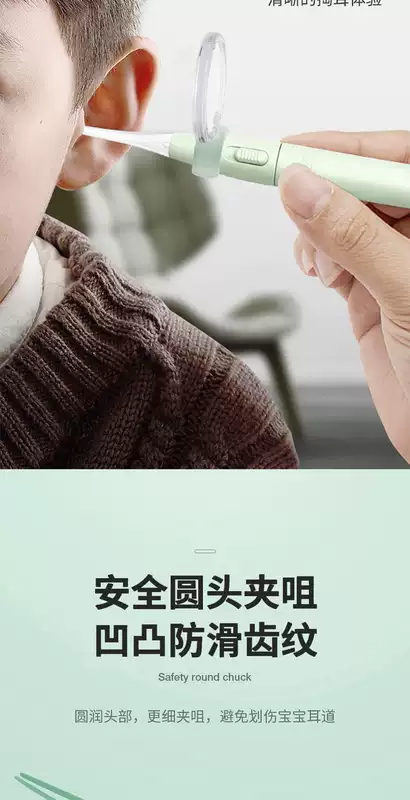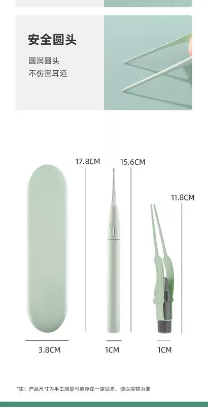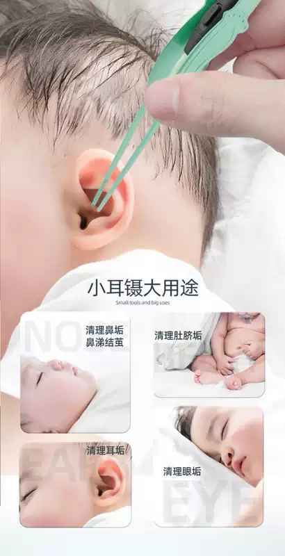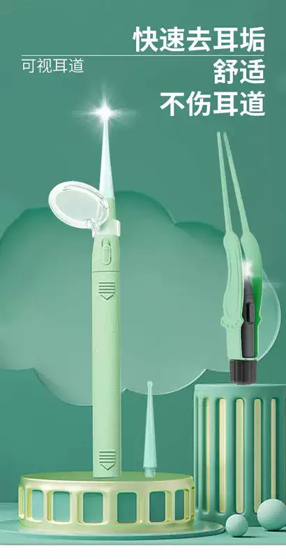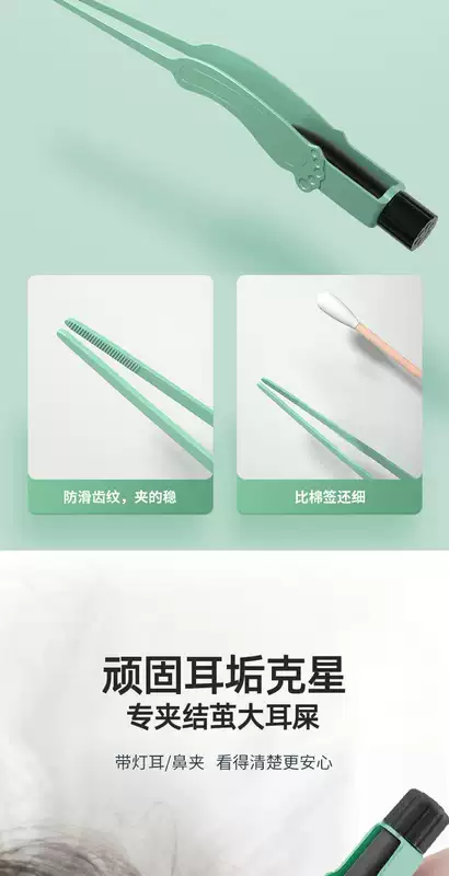 Yusenyi Soft Ear Tools Ear Digging Spoon Hair Digging Lamp Tweezers Baby Earwax Children's Special Head and Ear Light Belt Pickup Device Bohe Green (Battery Model) Visible Luminous Tweezers High Polymer Light Bright Eye Protection