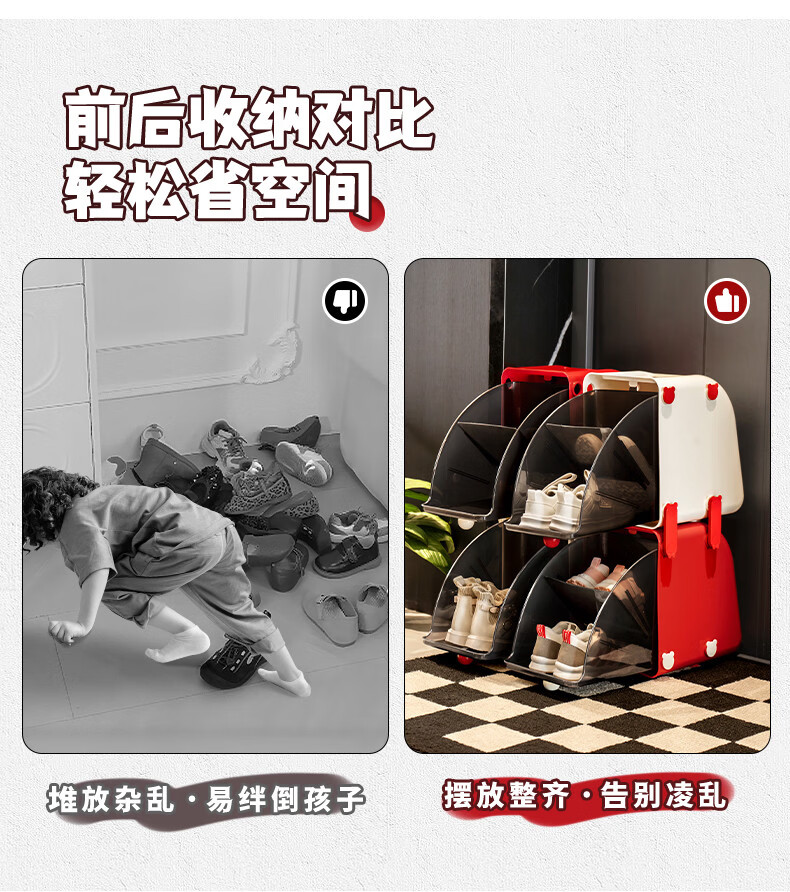 Pupan children's shoe rack baby shoe storage artifact space-saving storage shoe box layered children's shoe storage box cinnabar red + cream white + cinnabar red + children's shoe box pattern style