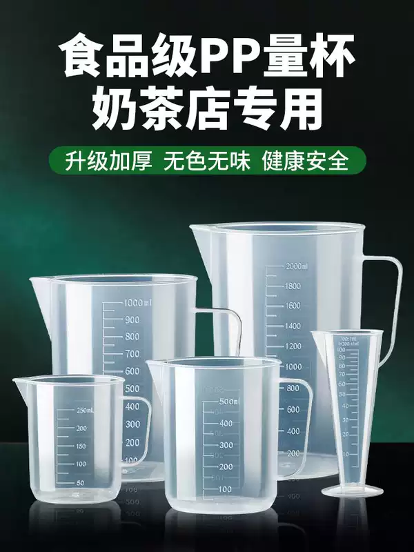 Yusenyi plastic measuring cup milk measurement large capacity food grade bucket with special scale for tea shop high temperature resistant ml barrel baking (thickened food grade) 250ml two pack with 100ml measuring cup