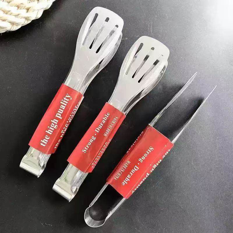 Jufanshi bread tongs three-line stainless steel food tongs food tongs fried barbecue tongs steak steamed bread bread barbecue tongs bread tongs 1 pack
