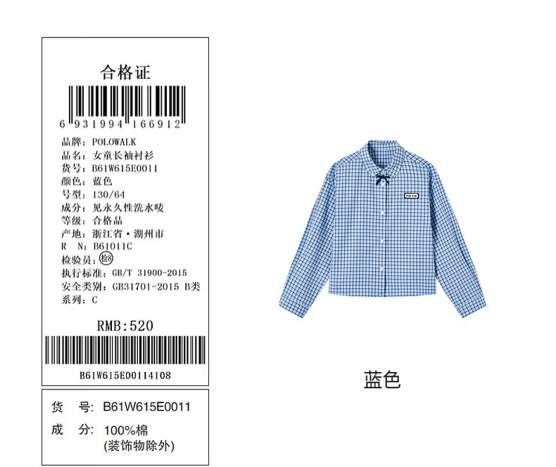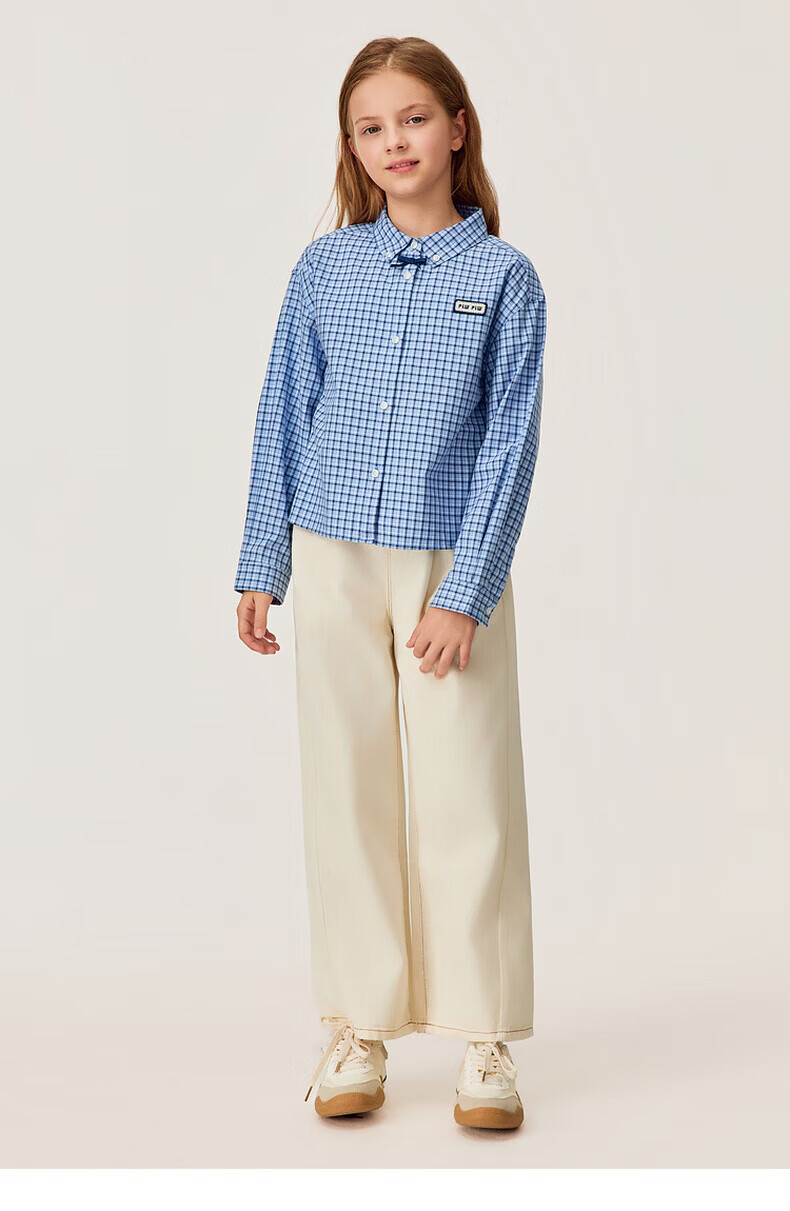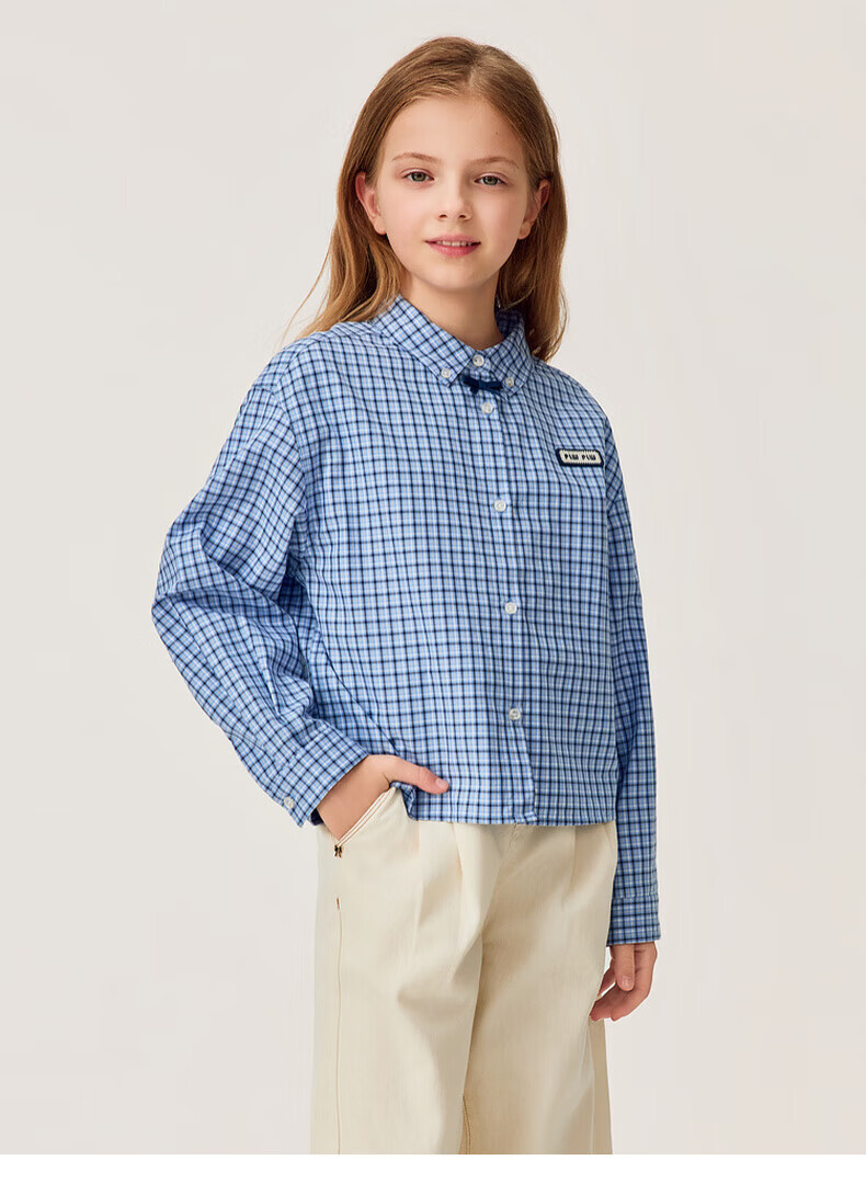 POLOWALK children's clothing girls' long-sleeved shirt 2026 new girls' long-sleeved shirt blue 130 cm