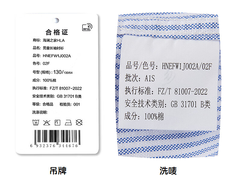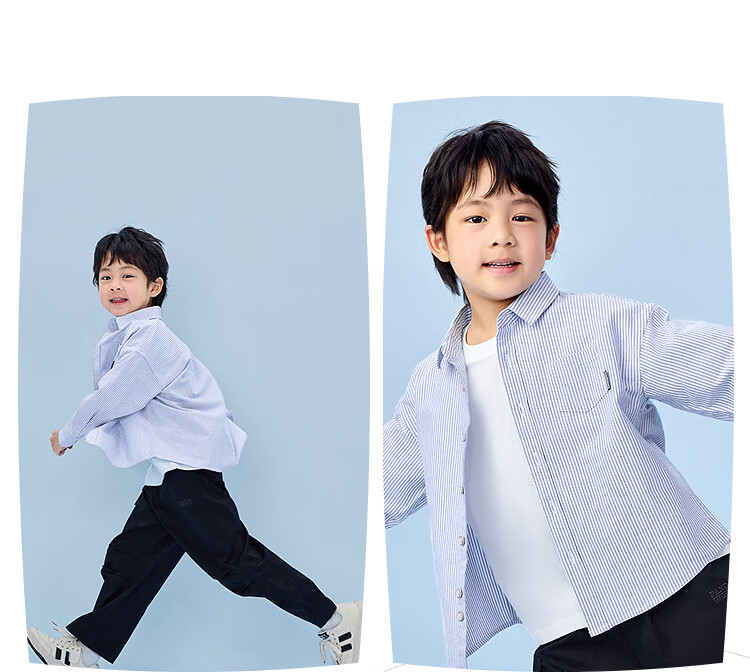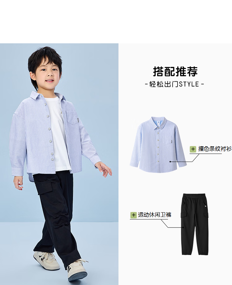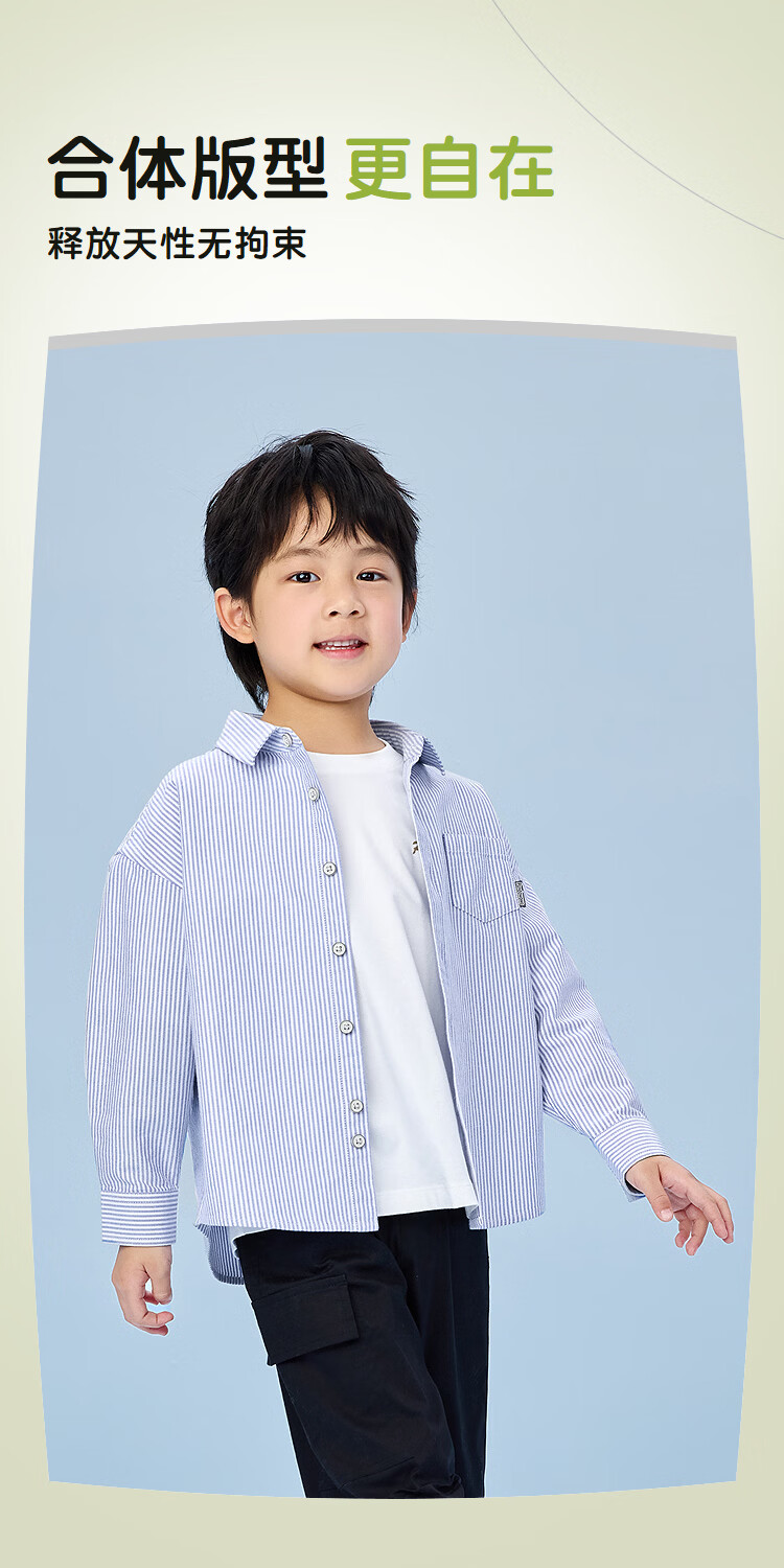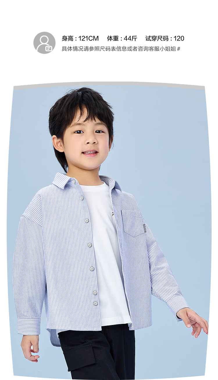 Heilan House (HLA) long-sleeved fashion shirt children's clothing 26 spring new 100% cotton lapel striped tops boys' shirts light blue stripes 02 110 /56