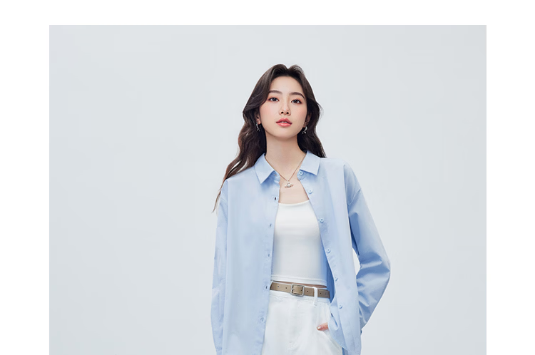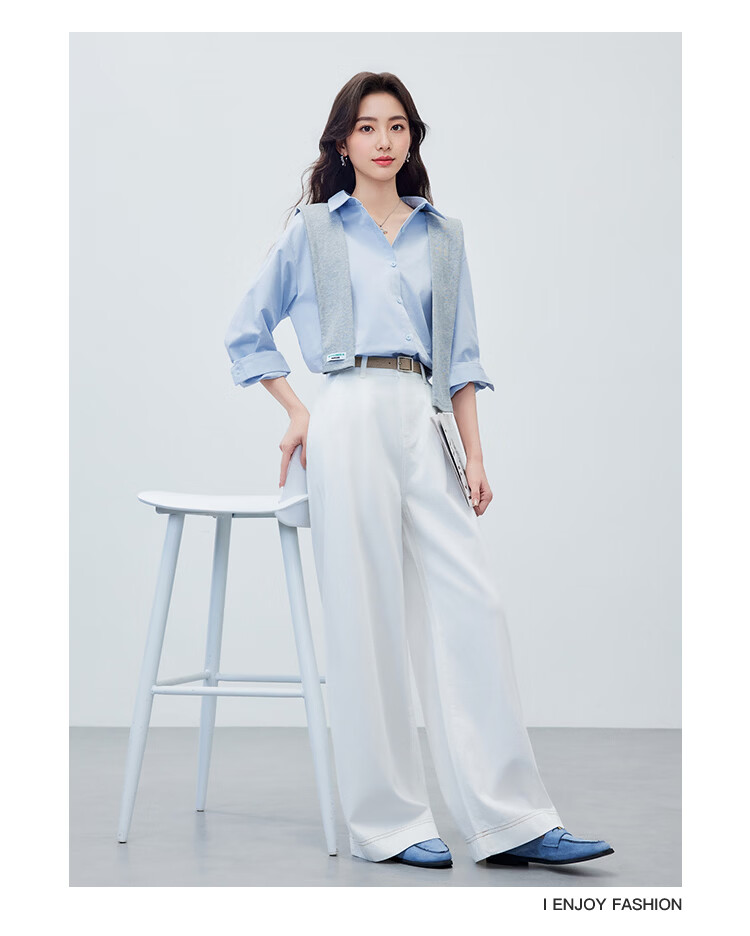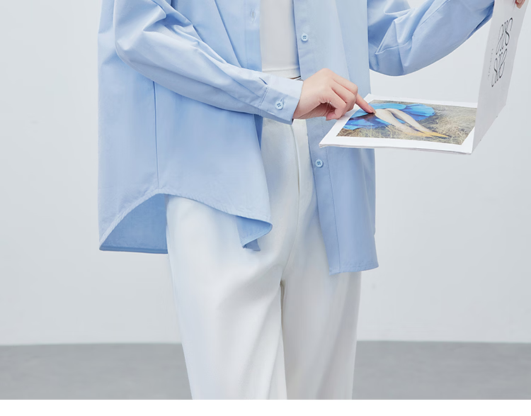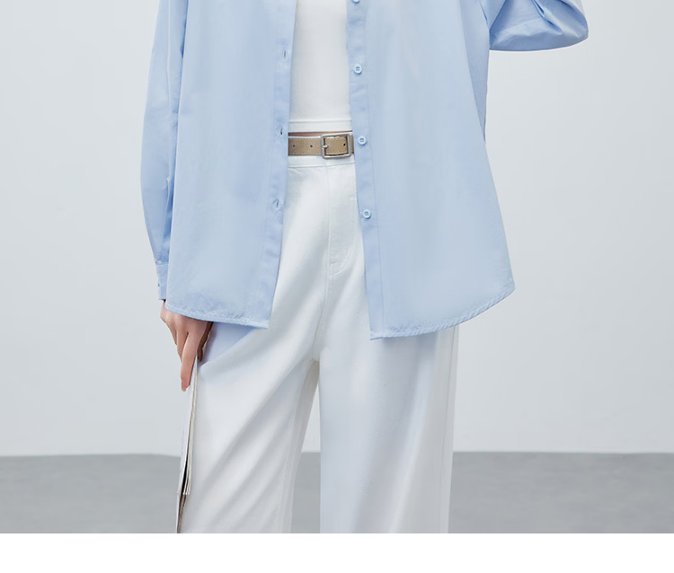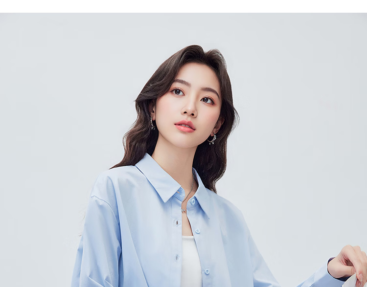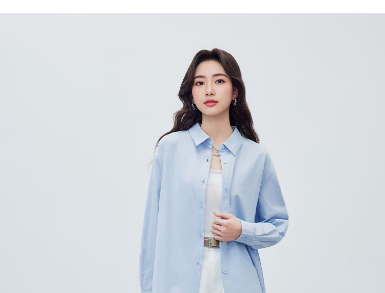IEF/Aiyifu 2026 spring new Korean style simple solid color basic commuting all-match shirt with top sky blue S