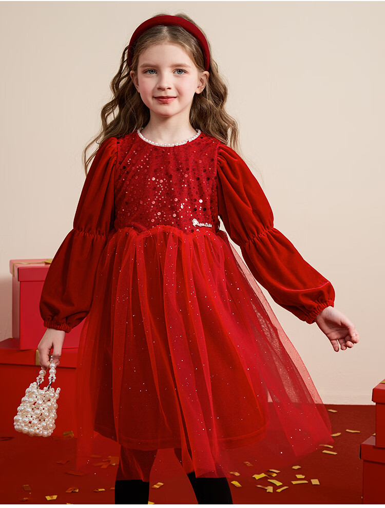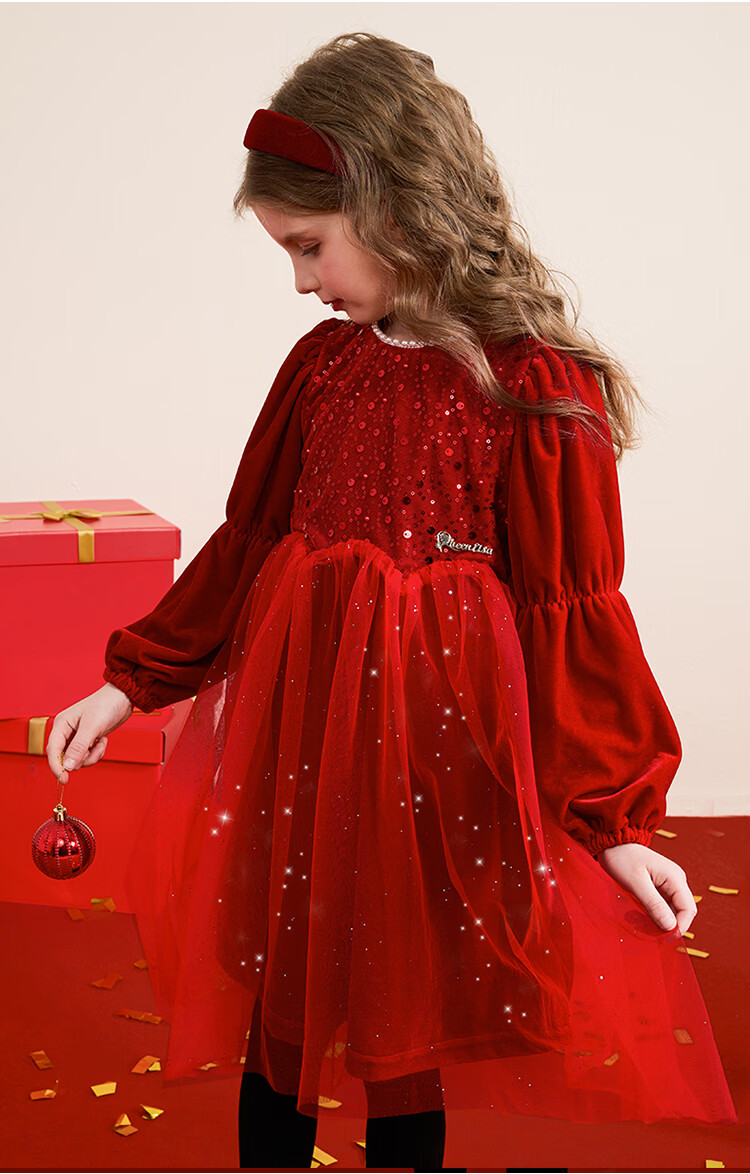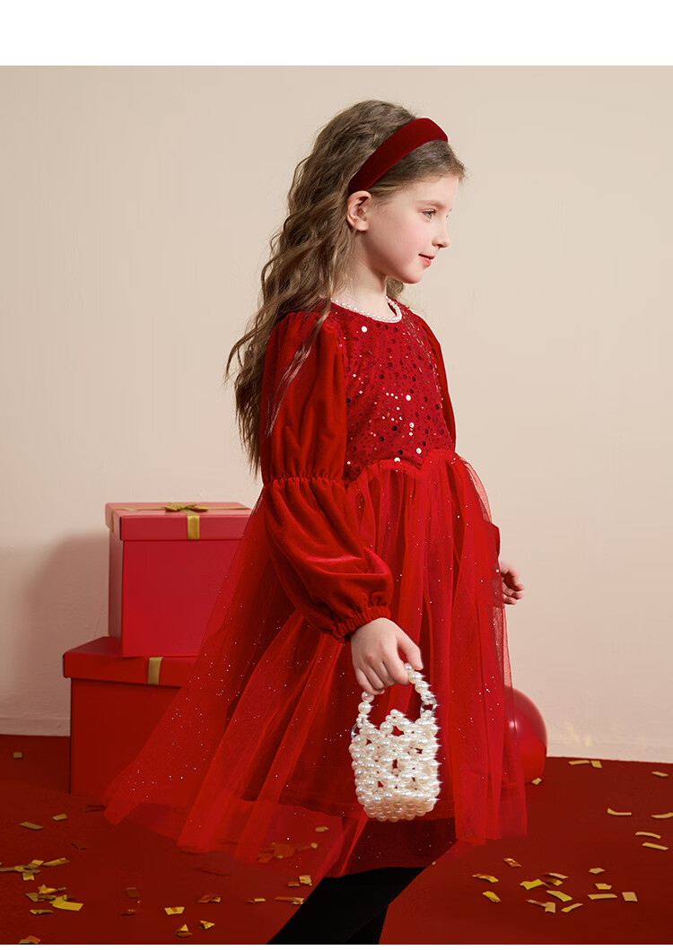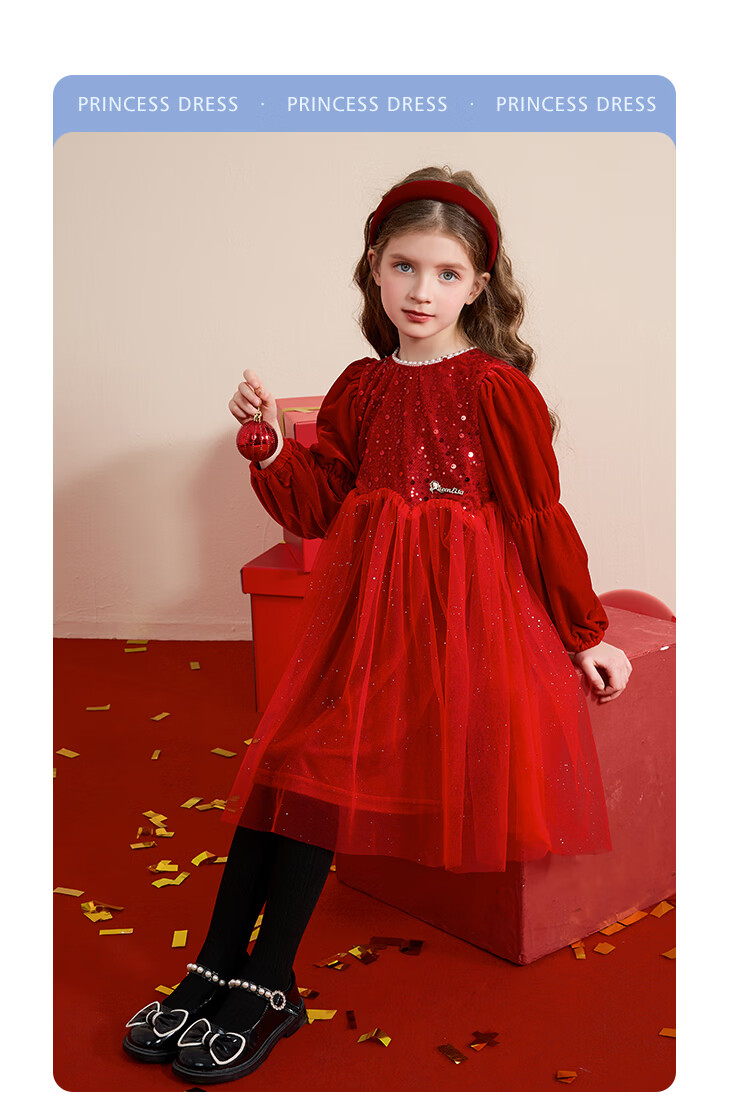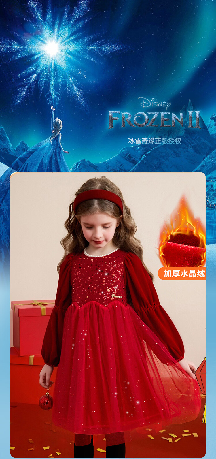 Disney (Disney) Girls Red Dress Winter New Children's Christmas Dress New Year Dress Girls Winter Dress Mesh Skirt Red 120