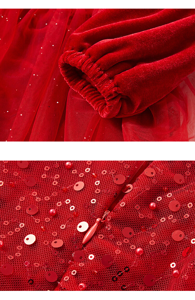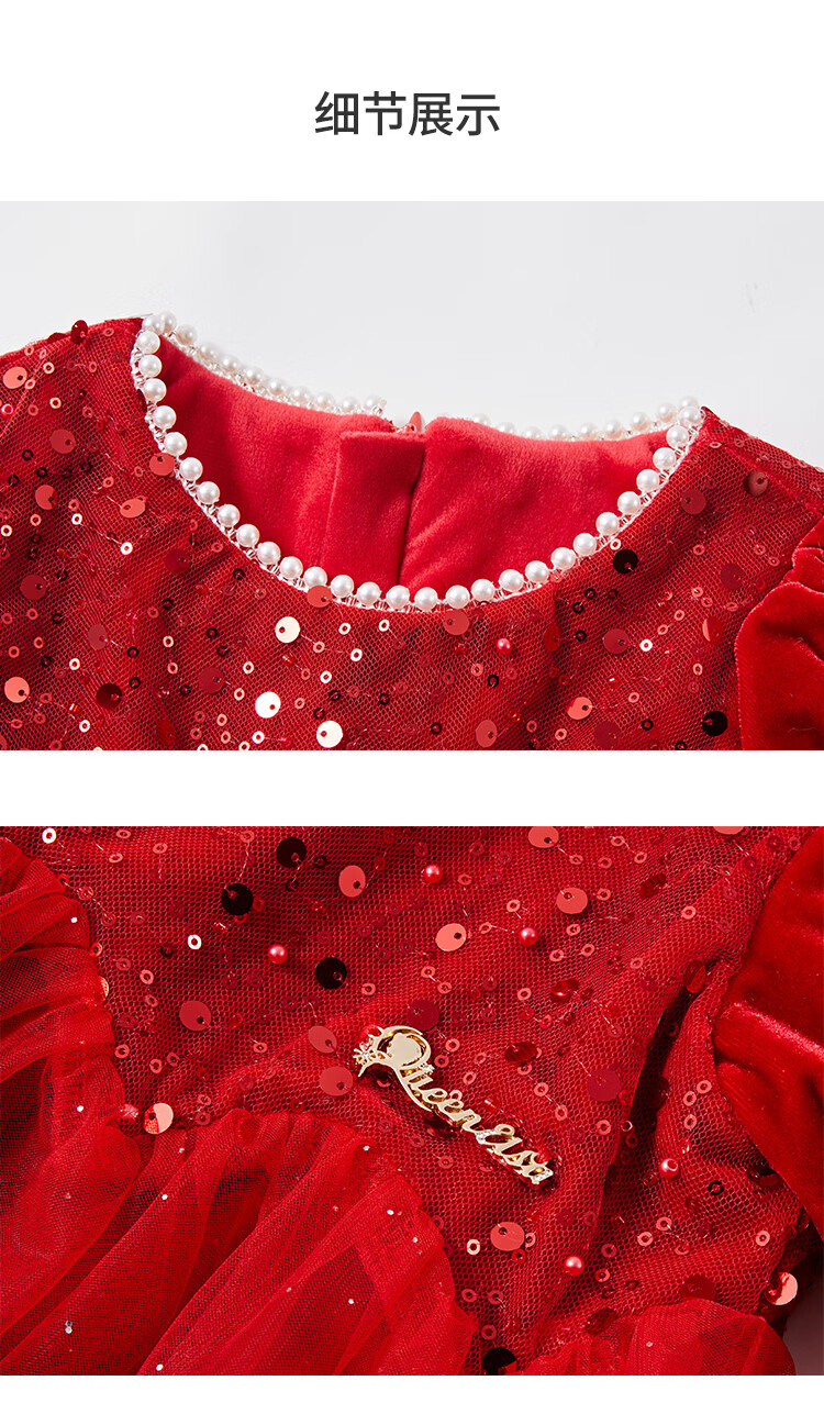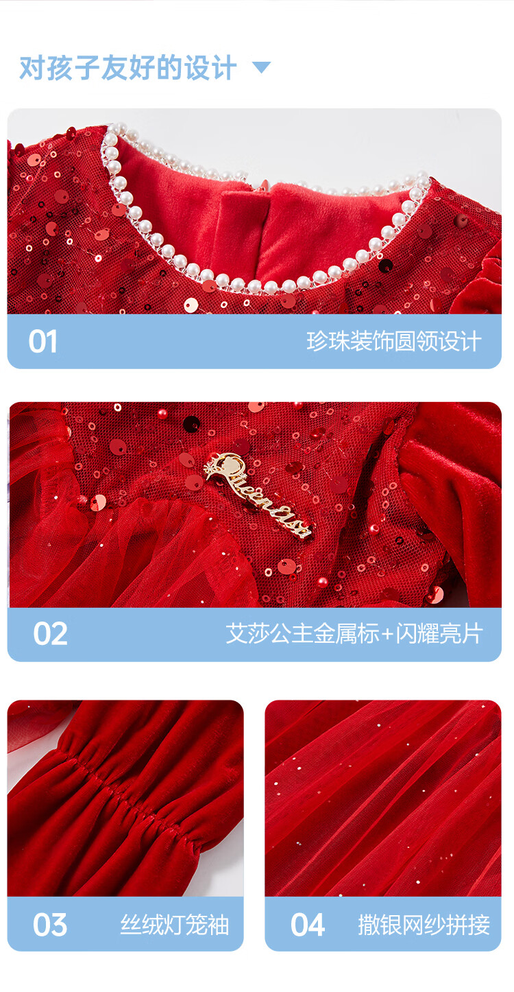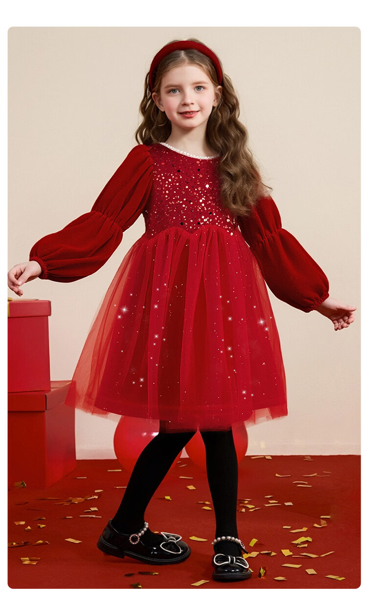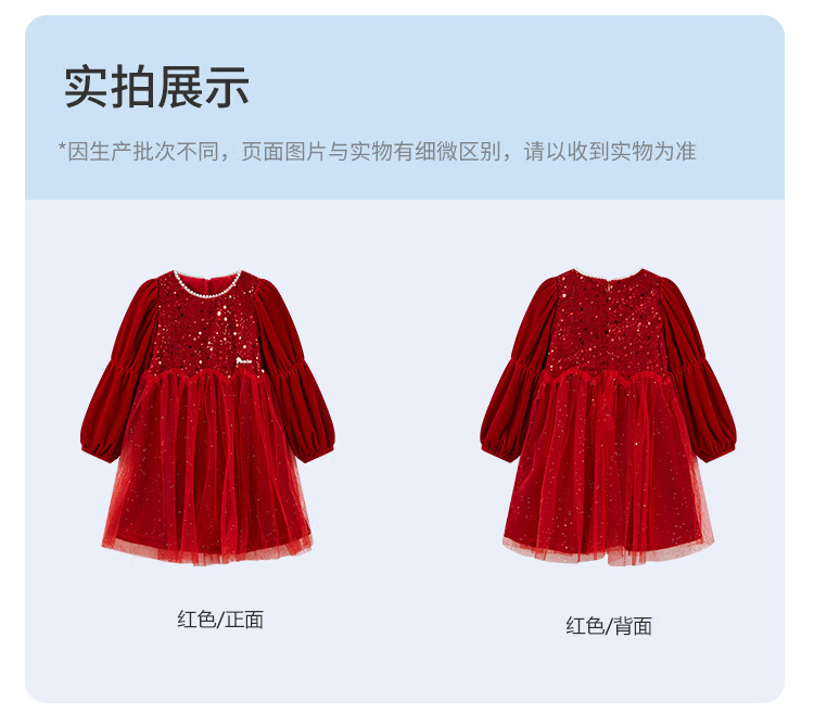 Disney (Disney) Girls Red Dress Winter New Children's Christmas Dress New Year Dress Girls Winter Dress Mesh Skirt Red 120