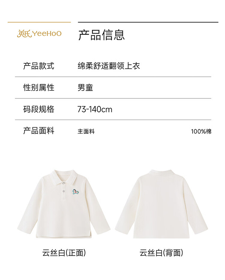 YEEHOO shopping mall children's long-sleeved T-shirt POLO collar lapel boys' tops 26 children's clothing YRTAJ1S002A Yunsi white cotton YRTAJ1S002A 80 cm