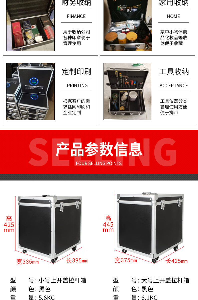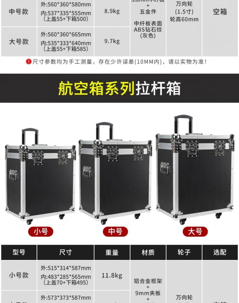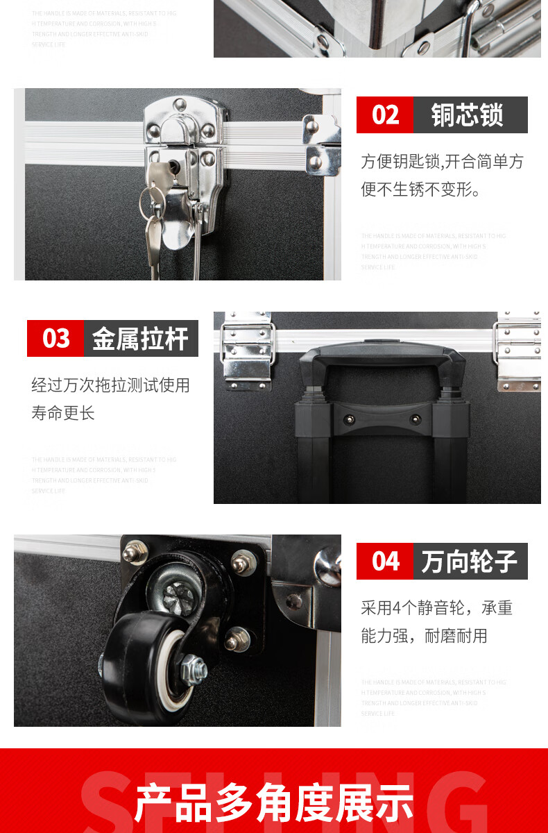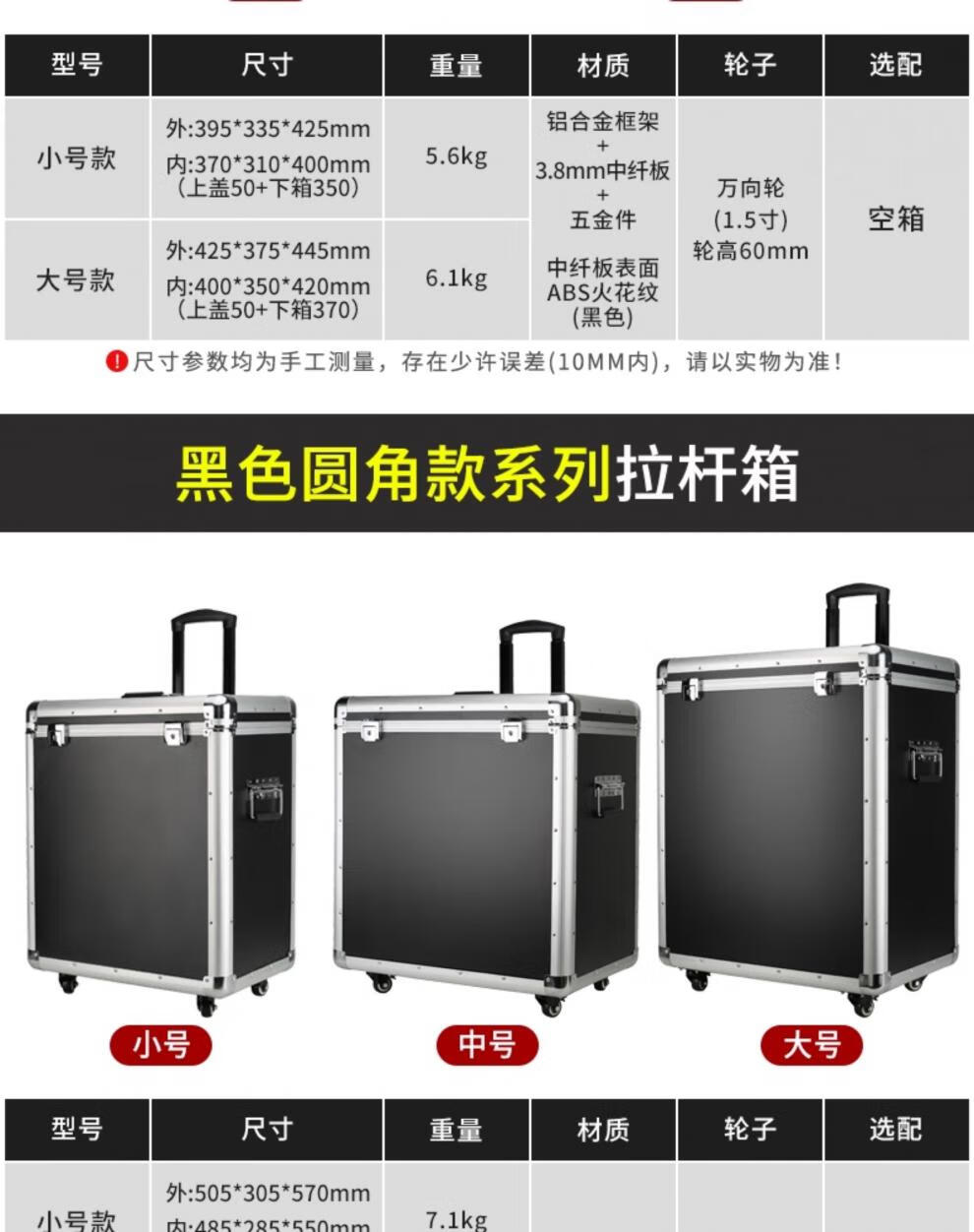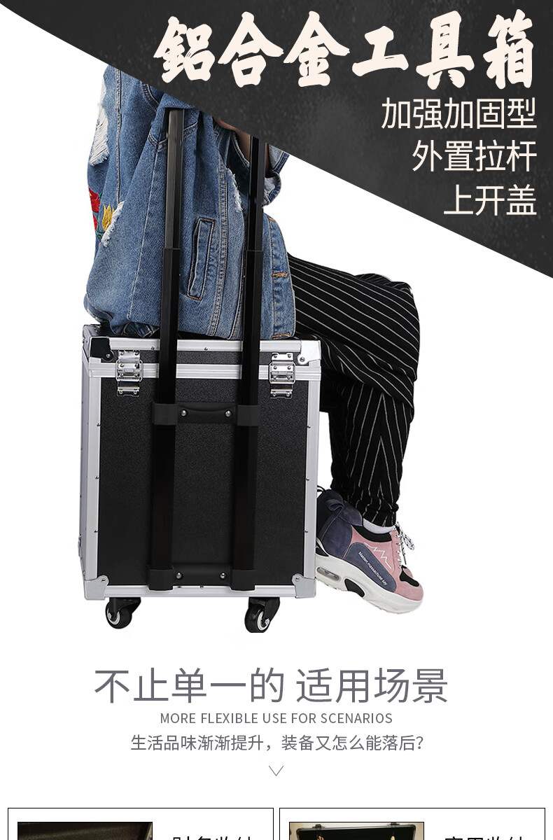 Pupan Aluminum Alloy Hardware Toolbox Instruments and Equipment Universal Wheel Trolley Box Accessories Large Protective Aviation Storage Box Extra Large Black Trolley Empty Box