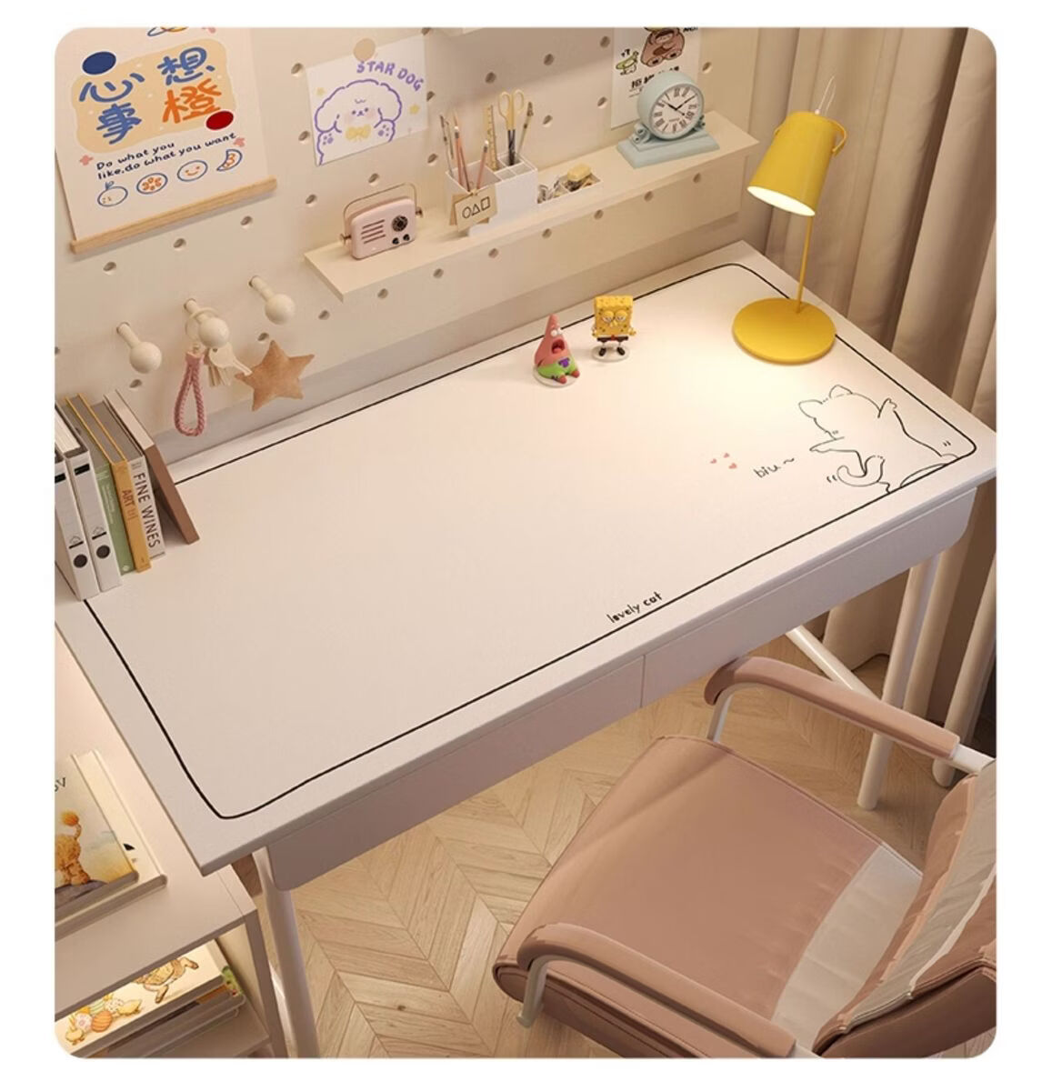 Pupan desk mat student study desk children's special girls class desktop oil-proof and waterproof computer tablecloth 201 Strawberry White Rabbit 70x120cm