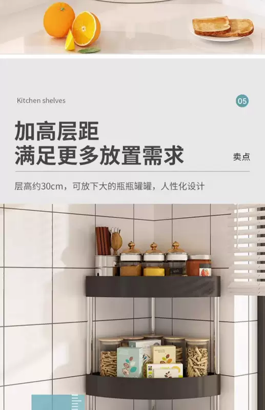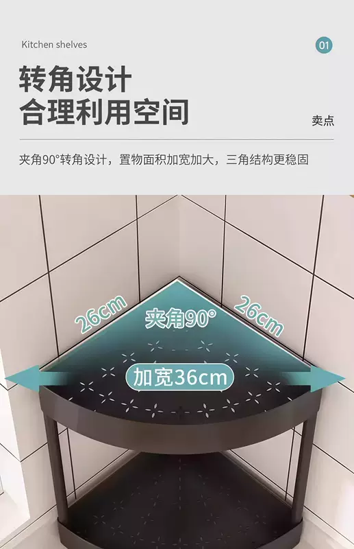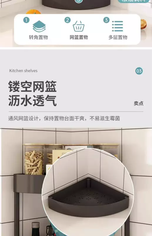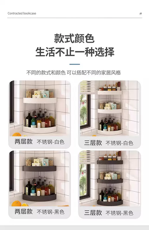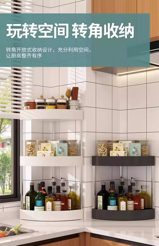Yusenyi kitchen countertop corner shelf household punch-free semicircular corner tripod seasoning bottle storage storage rack upgraded (3-layer black) countertop shelf