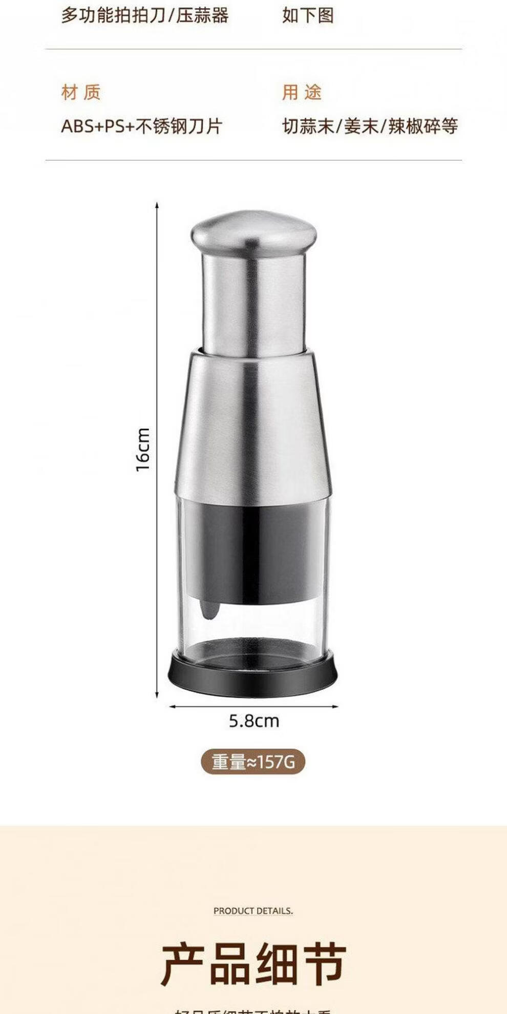 ZFEN German imported quality manual pat knife stainless steel garlic pounding garlic press garlic press cutting garlic garlic cutter beat new upgraded model multi-functional garlic pounding artifact