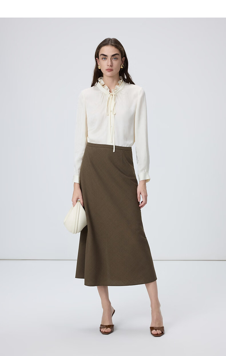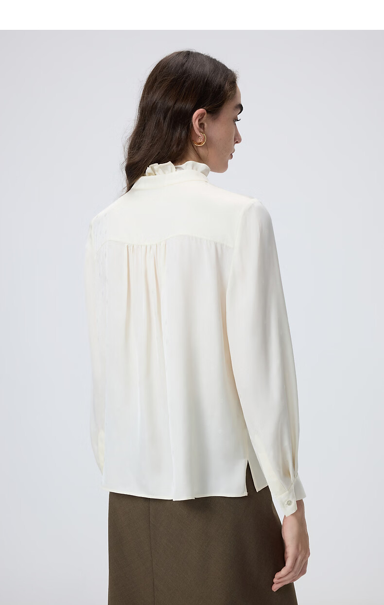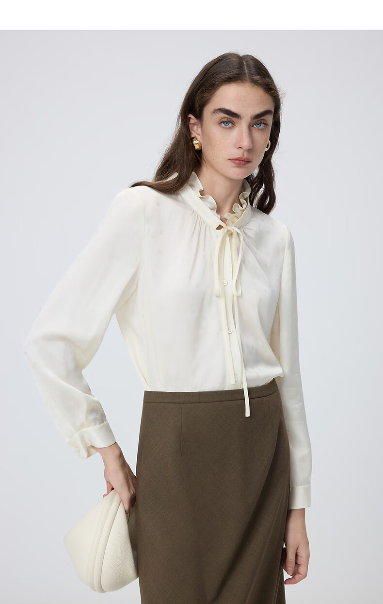 Langzi lace-up retro polka-dot shirt with earrings, elegant and gentle commuter style top for women, 2026 spring new style, off-white L