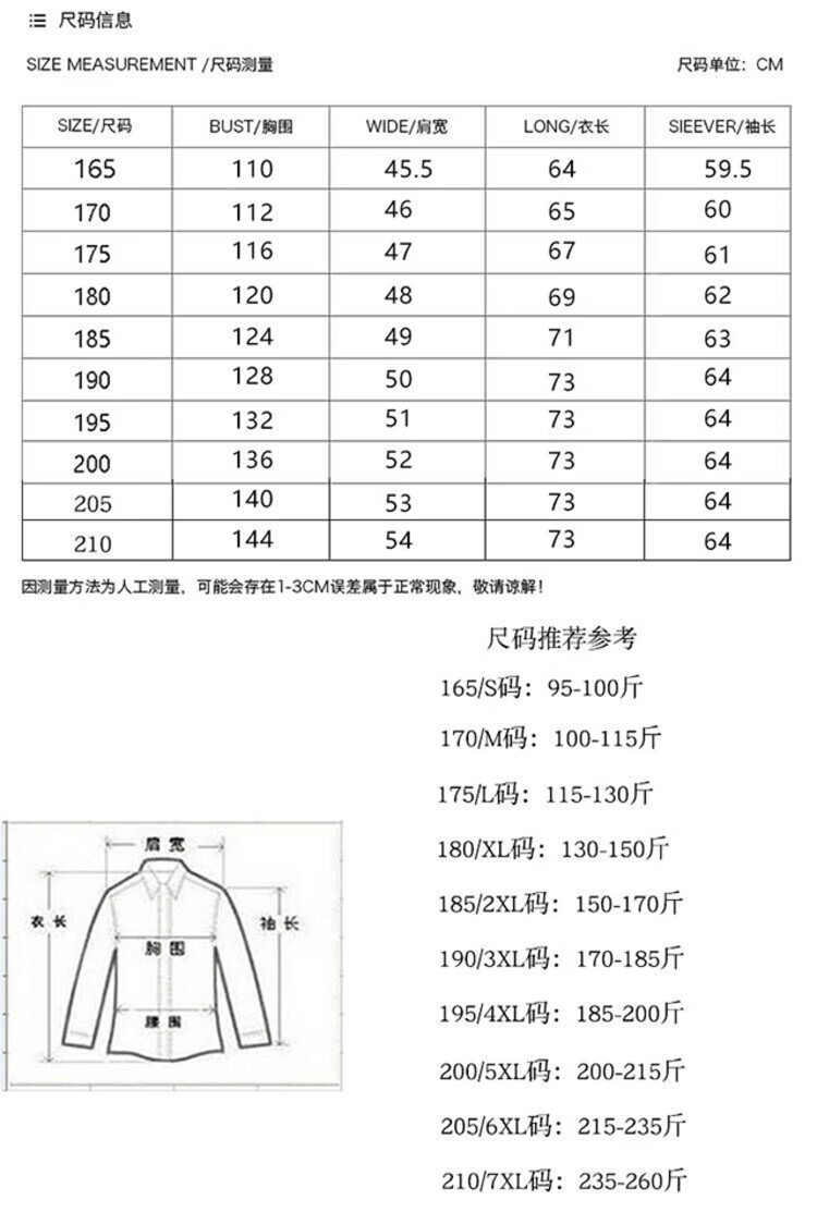 China (cm) 165 / 88-90 170 / 96-98 175 / 108-110 180 / 118-122 185 / 126-130
