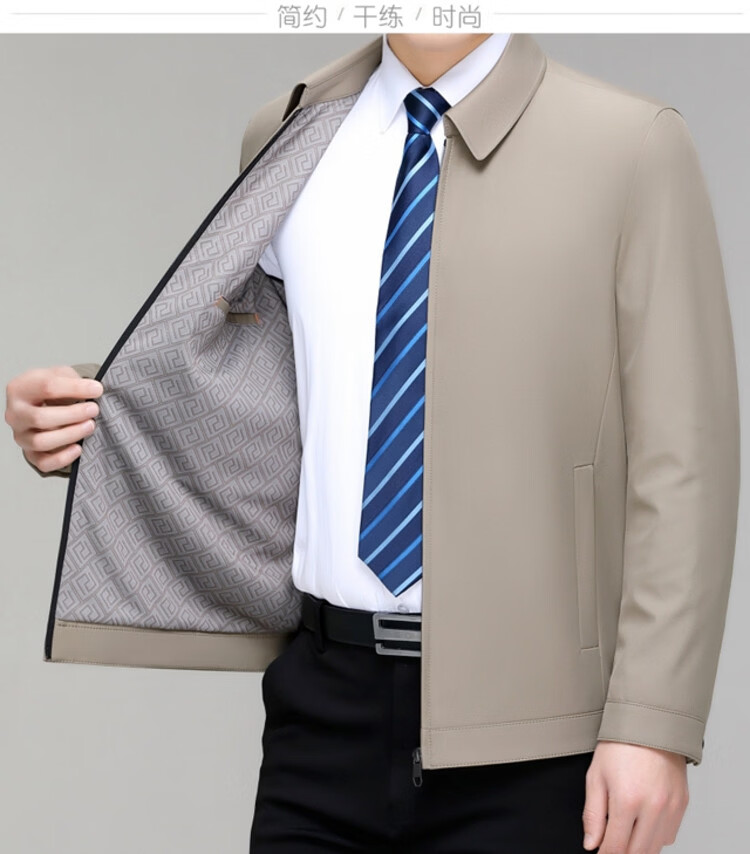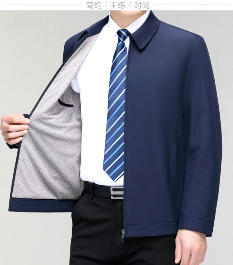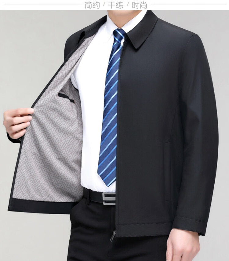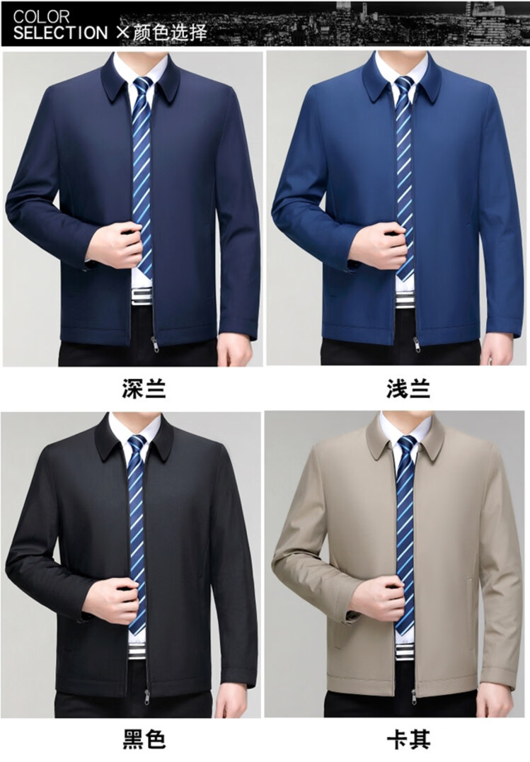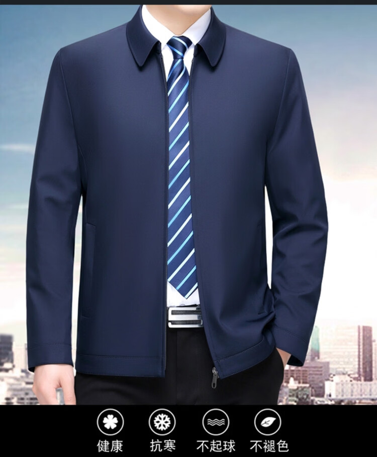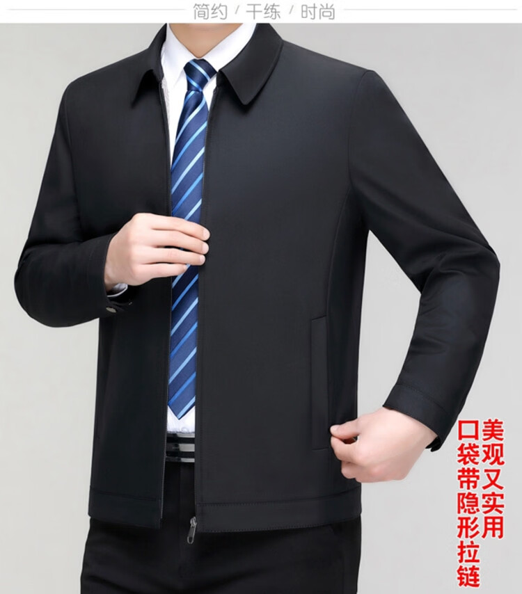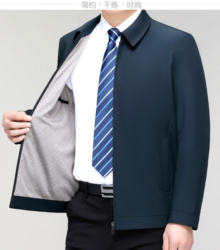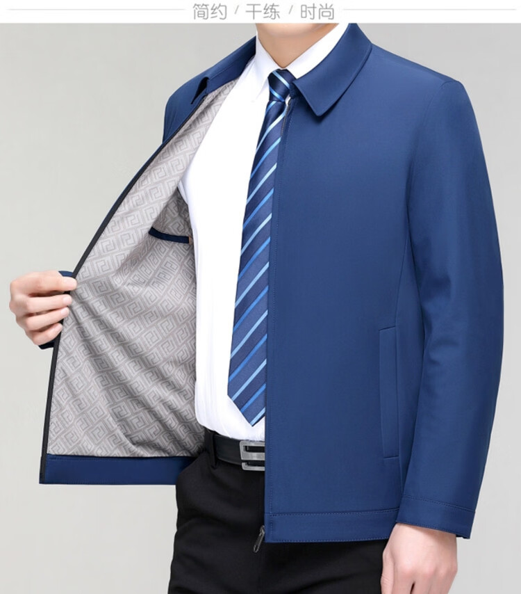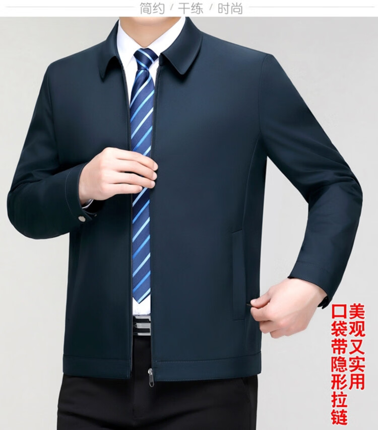 Hengyuanxiang men's casual jacket spring and autumn middle-aged dad wear fashionable lapel business casual high-end jacket for men Shenlan 2XL 185