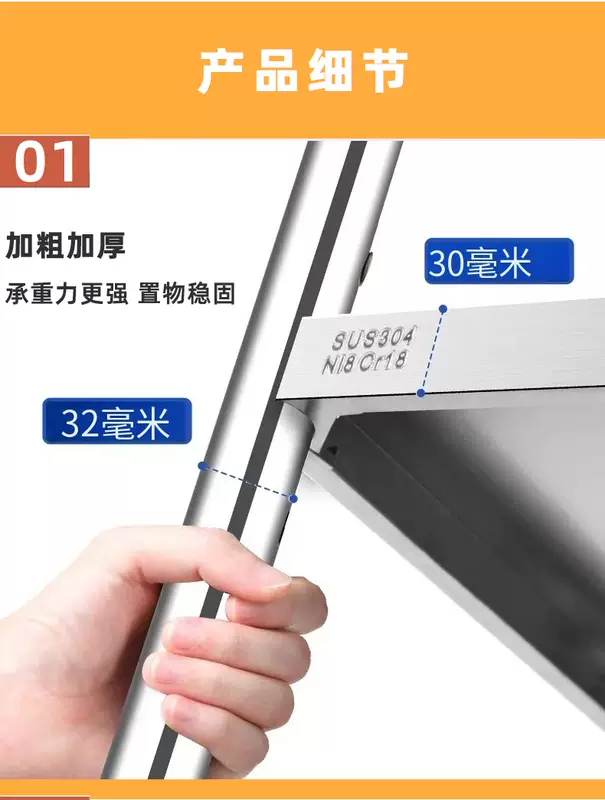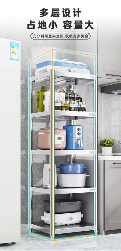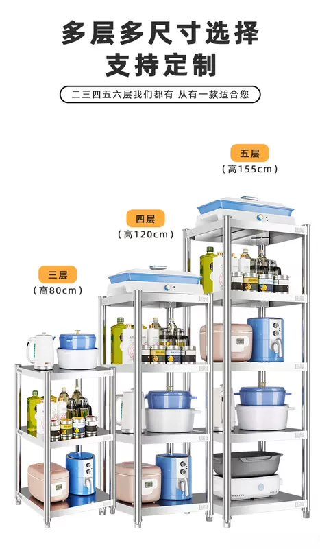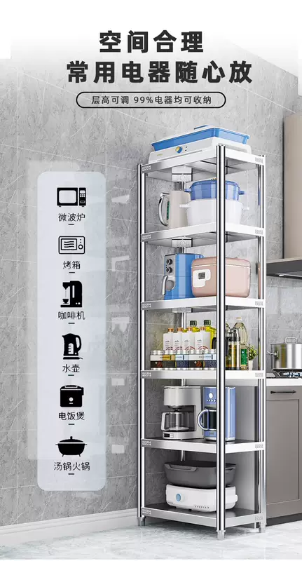 Yusenyi 304 stainless steel kitchen shelf sandwich floor-standing multi-layer storage shelf household microwave oven width 30 length 40 (304 stainless steel) 175CM high six floors