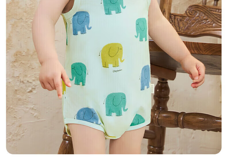 Nido Bear's new summer baby jumpsuit for men and women, baby crawling suit, newborn harem bag, vest, green elephant 73cm