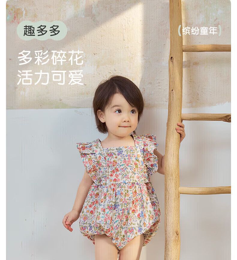 Nido Bear's new summer baby onesie with fart cover for baby girl pure cotton crawling suit triangle suit cute forest trip 73cm