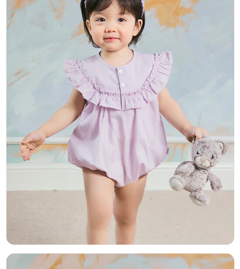 Nido Bear's new summer baby clothes, baby clothes, newborn baby jumpsuit, princess style sleeveless, cherry blossom pink 73cm