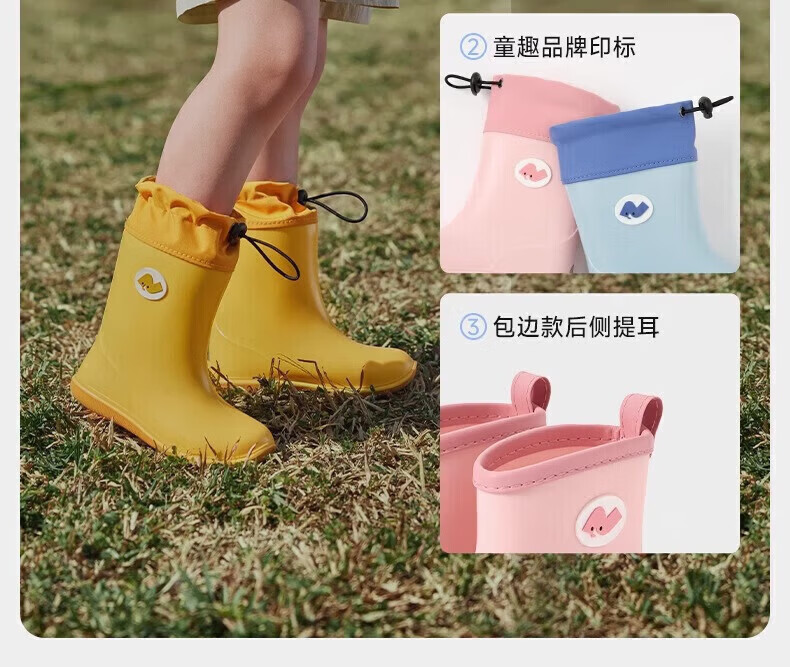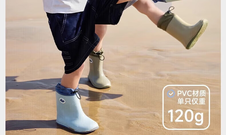 Nido Bear children's rain boots, baby waterproof rain boots, boys and girls, non-slip water shoes for toddlers, hemmed version YX2502 khaki green 14, inner length 14cm, suitable for feet 13cm long