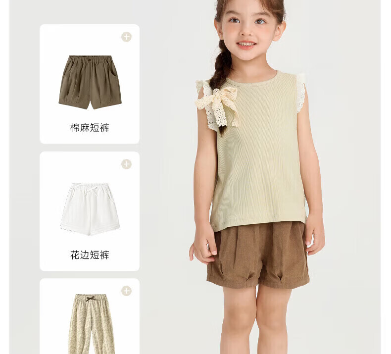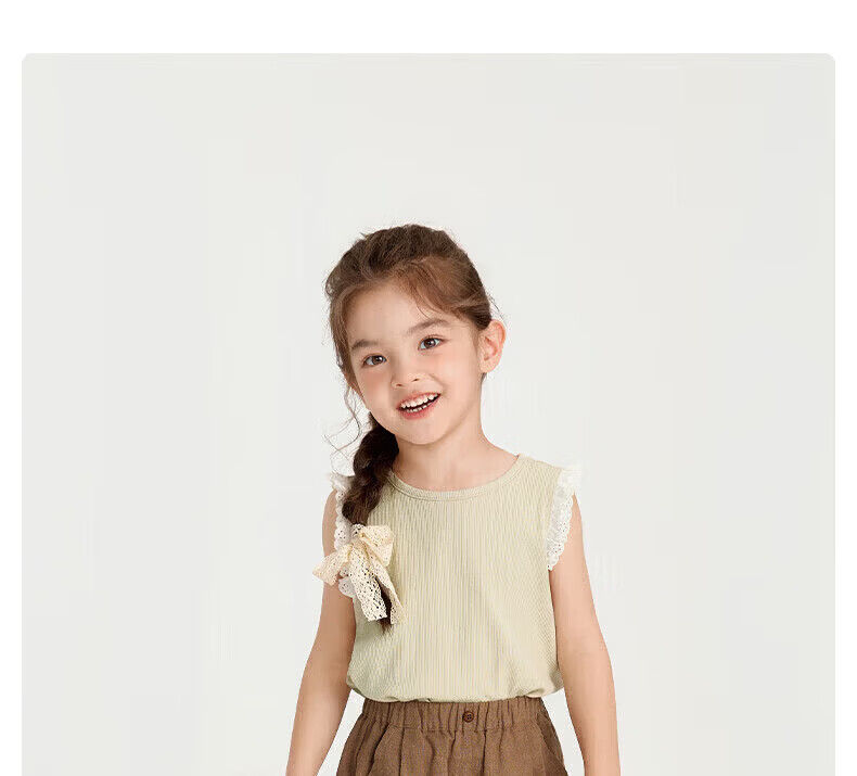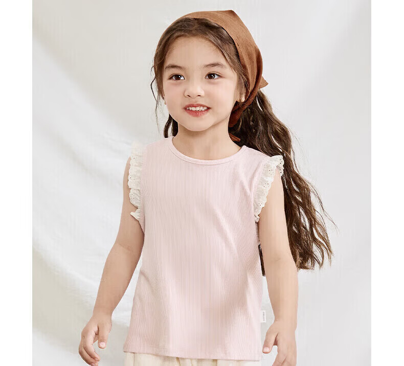 Nido Bear Summer New Girls Vest Baby Girl Contrast Color Lace Sweet Breathable Fresh Pink 90