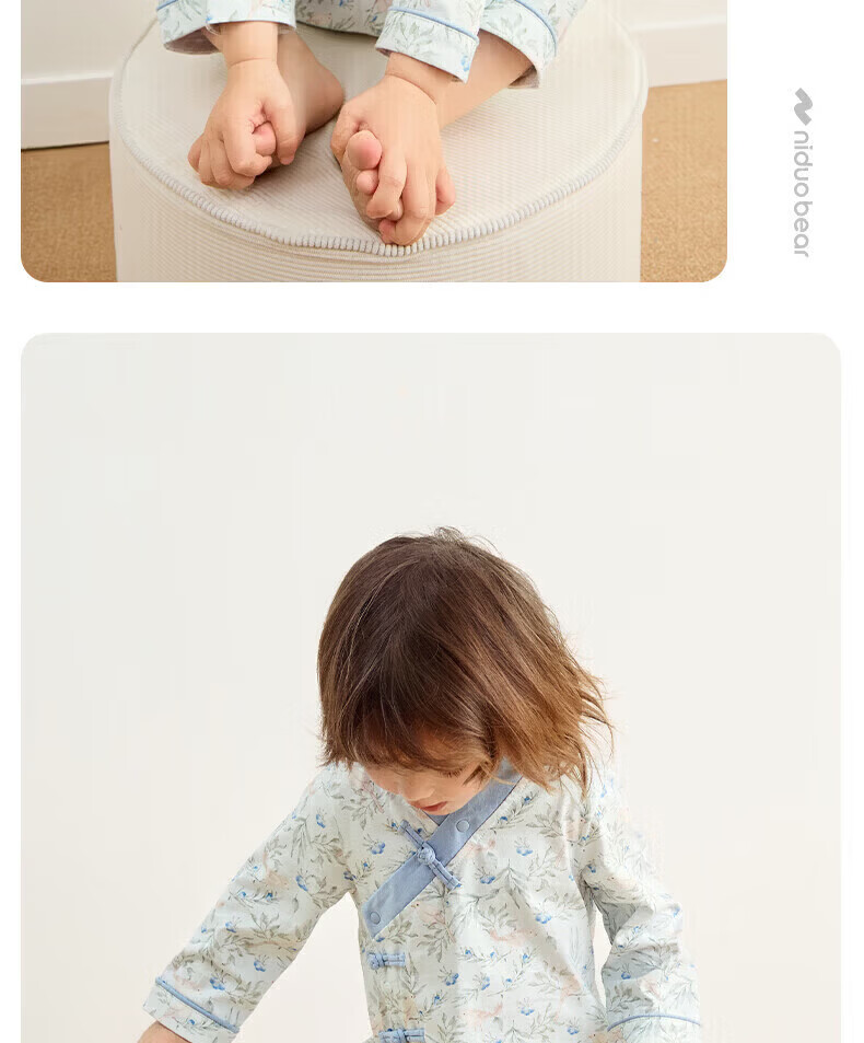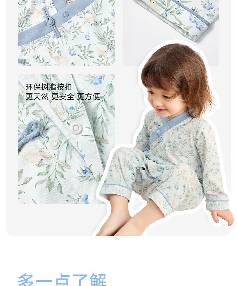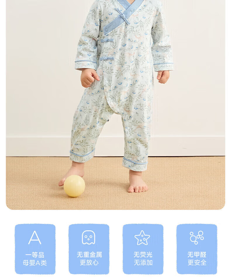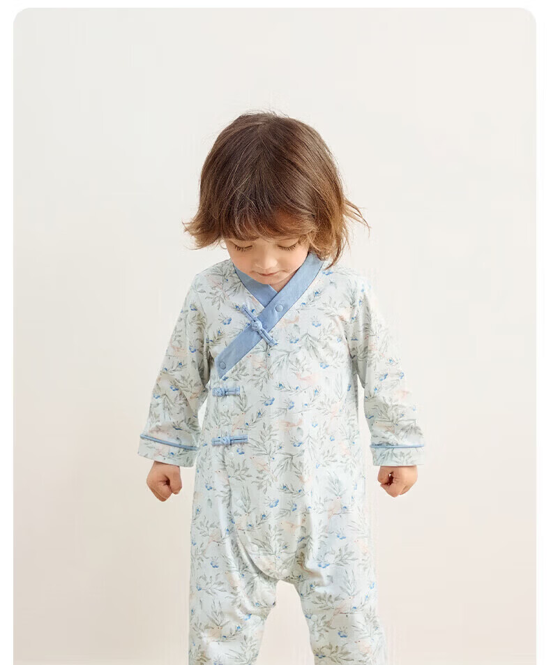 Nido Bear's new baby clothes, spring baby boy jumpsuit, pure cotton crawl suit for outdoor wear, new Chinese style, Blueberry and Sparrow 66cm