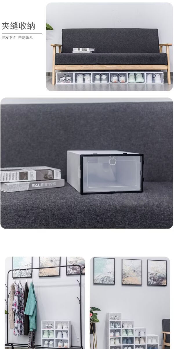 Pupan transparent shoe storage box dustproof and anti-oxidation shoe box multi-layer foldable shoe rack style shoe cabinet plastic shoe box storage black women's model buy 3 get 3 free six boxes 1x1x1cm