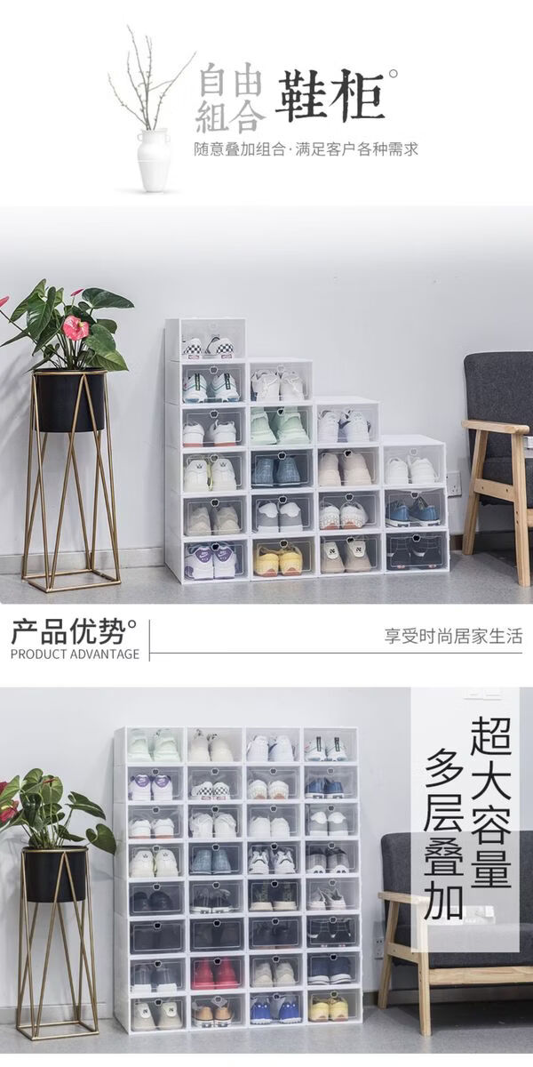 Pupan transparent shoe storage box dust-proof and anti-oxidation shoe box multi-layer foldable shoe rack style shoe cabinet plastic shoe box collection white women's model buy 3 get 3 free six boxes 1x1x1cm