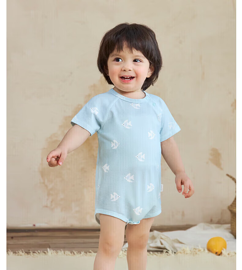 Nido Bear's new summer baby onesie, baby bag, men's and women's romper, breathable short-sleeved bamboo fiber, lively hairtail 73cm