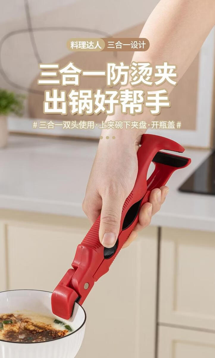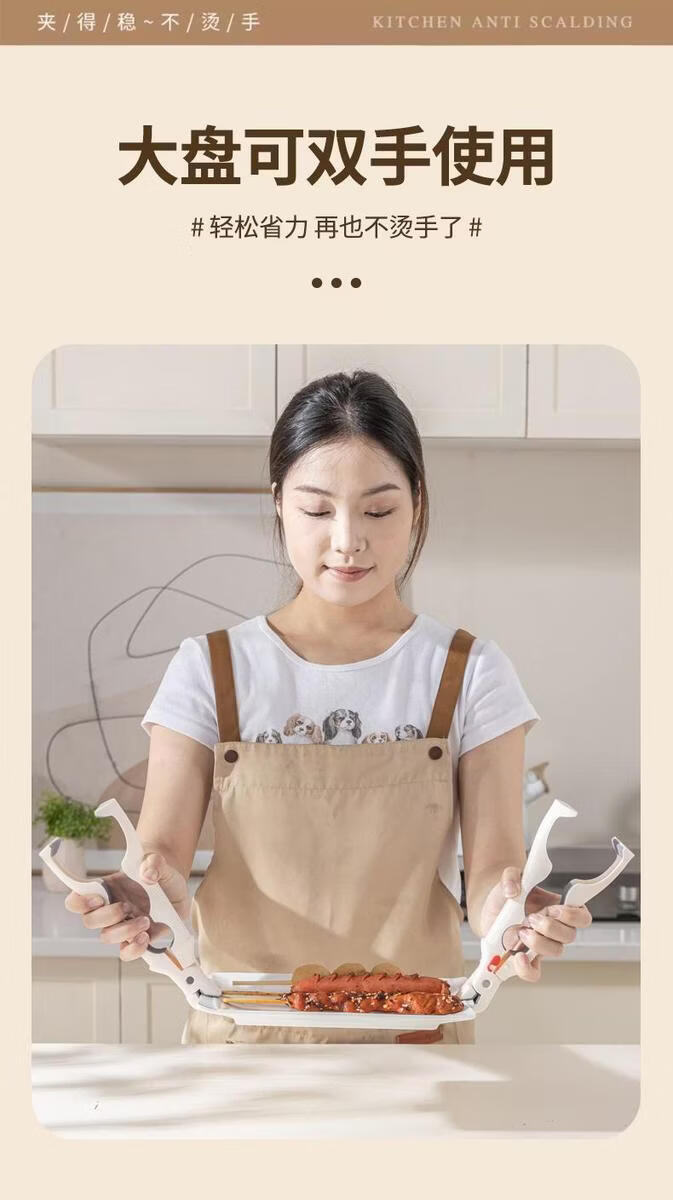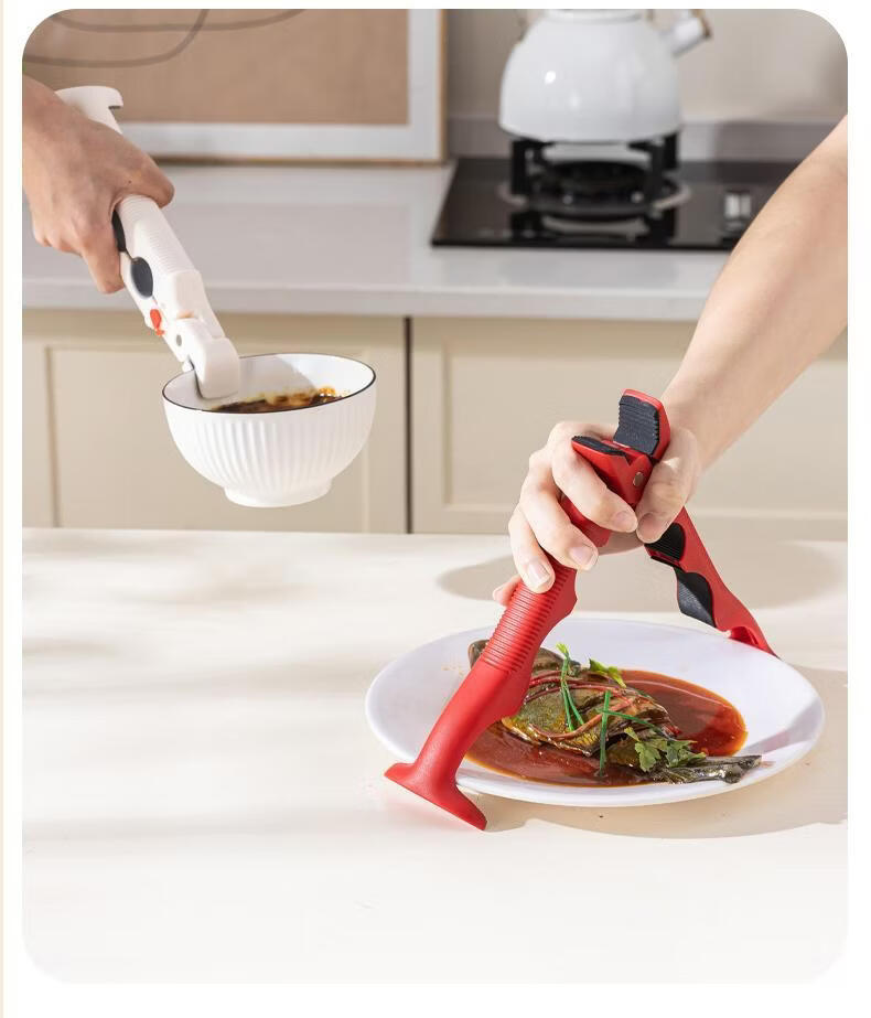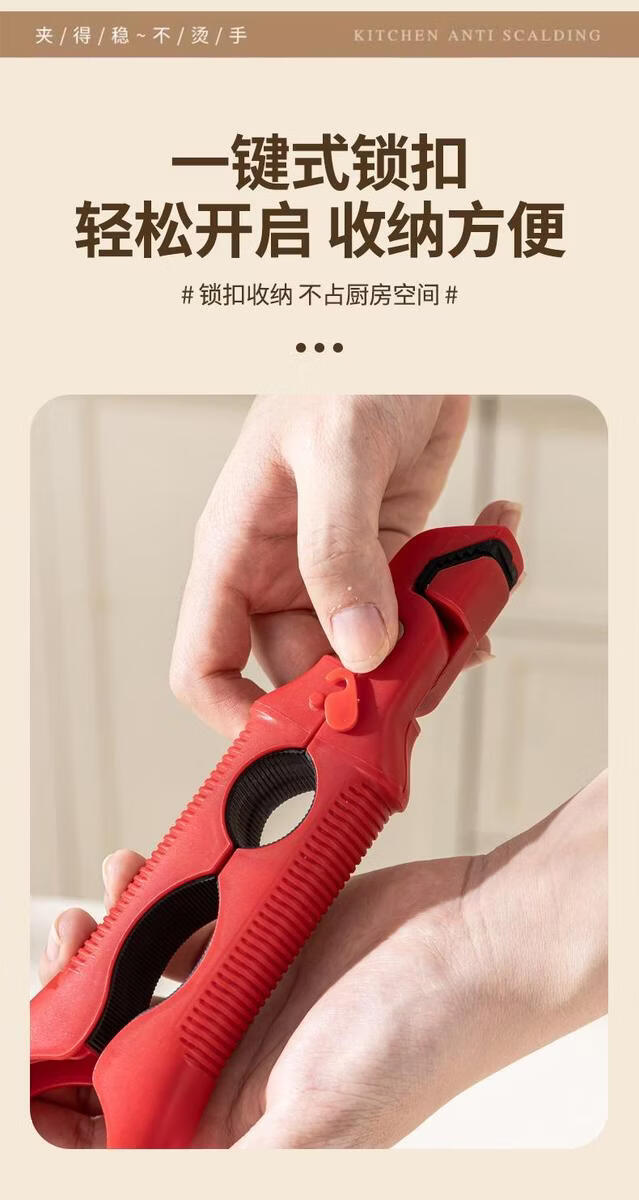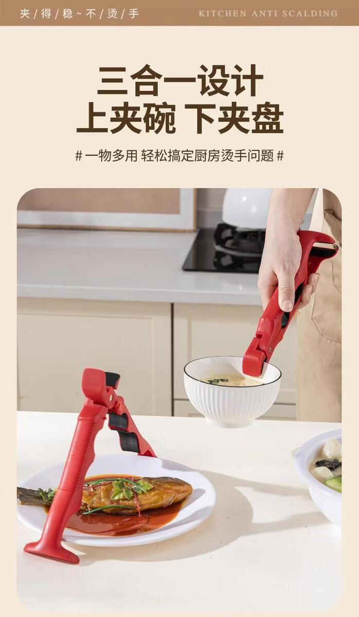 Yonghuan anti-scalding plate and bowl clips, high temperature resistant silicone non-slip tray, baking tray and steamer clips, 2 pack, Chinese red + noble white + kitchen anti-scalding clips + upper and lower bowls