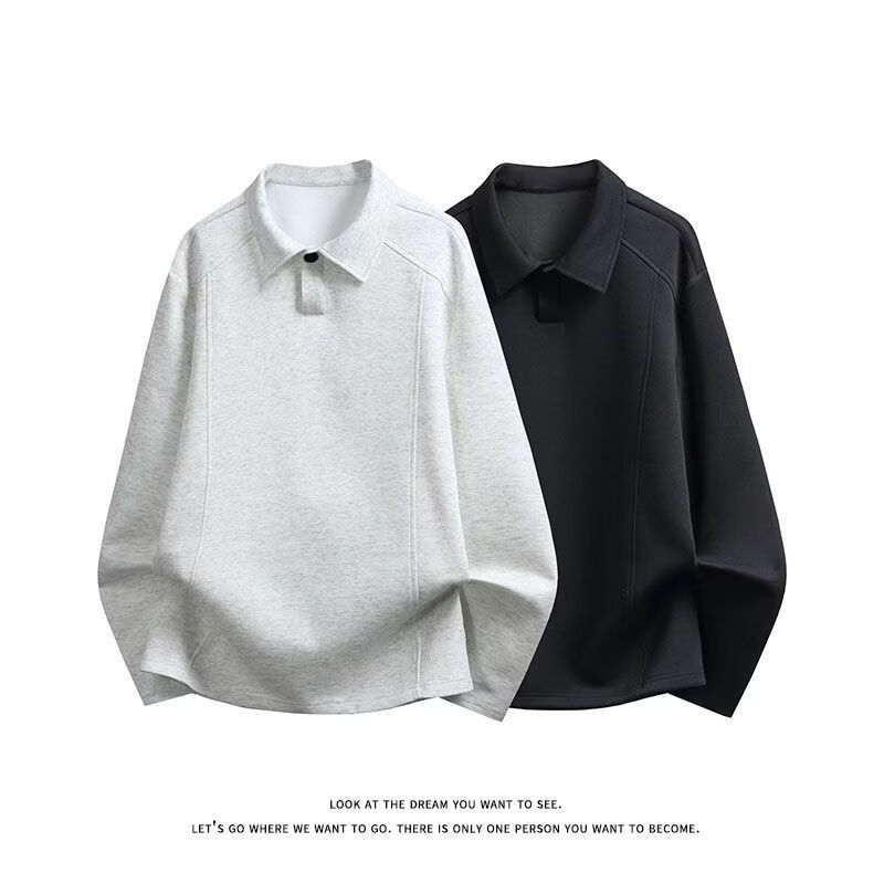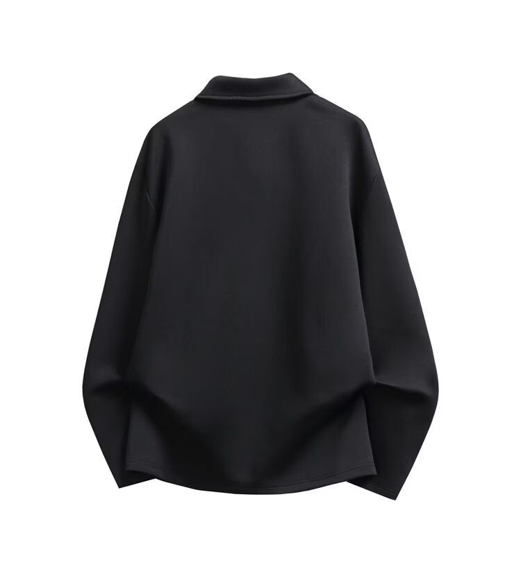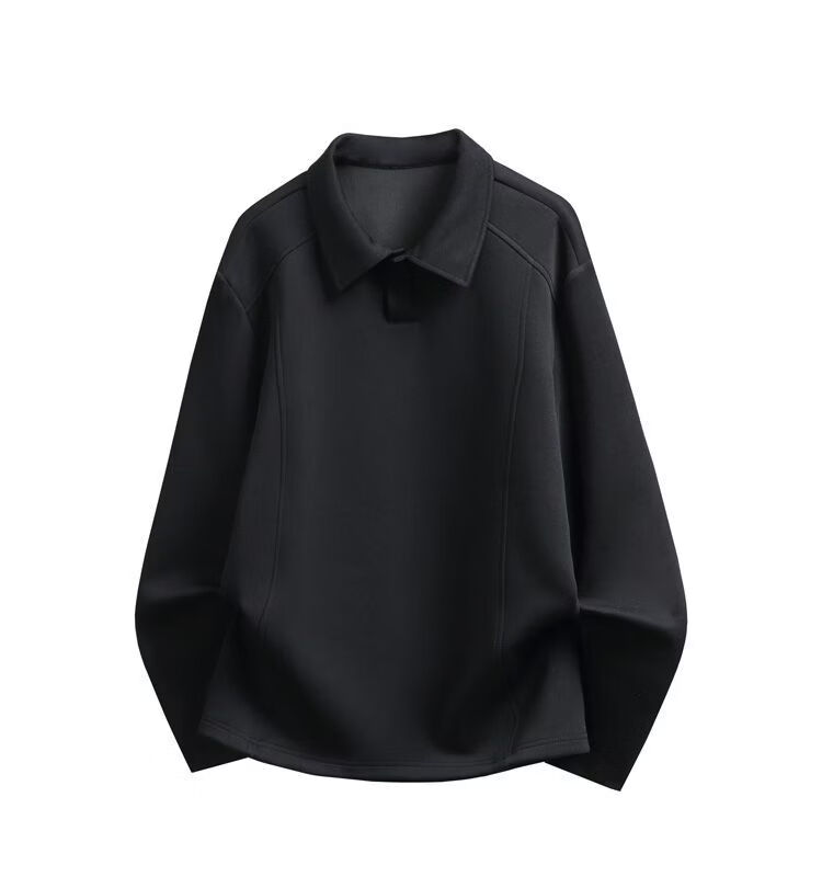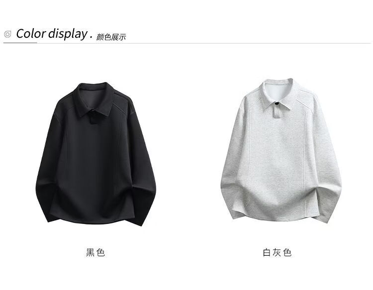 PANMAX men's simple solid color loose casual bottoming pullover top trendy new lapel T-shirt bottoming shirt black M recommended 95-115Jin Jin equals 0.5 kg