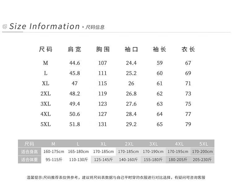 China (cm) 165 / 88-90 170 / 96-98 175 / 108-110 180 / 118-122 185 / 126-130