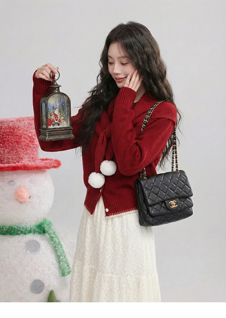 Youxiang Winter Snow Expression New Year's Gentle Atmosphere Red Sweater Women's 25 Winter New Lazy Style Top Retro Red S