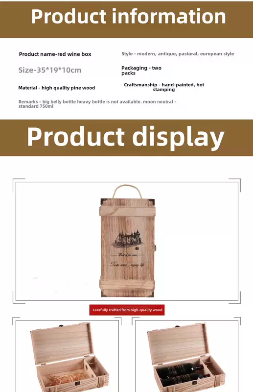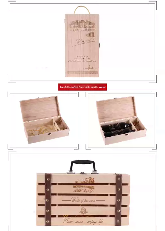 Yusenyi red wine packaging box wooden box double box wine box wine red wine red wine wooden gift box wooden box six-pack flip cover