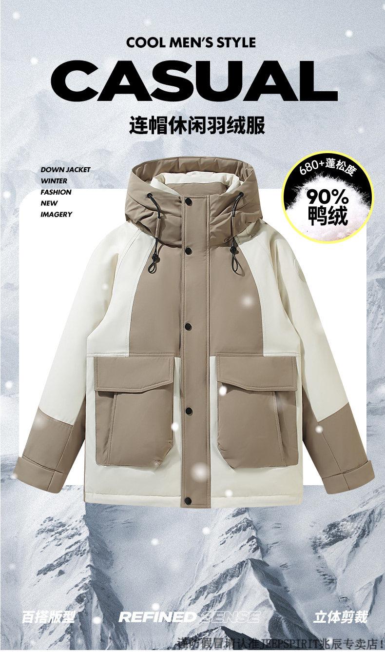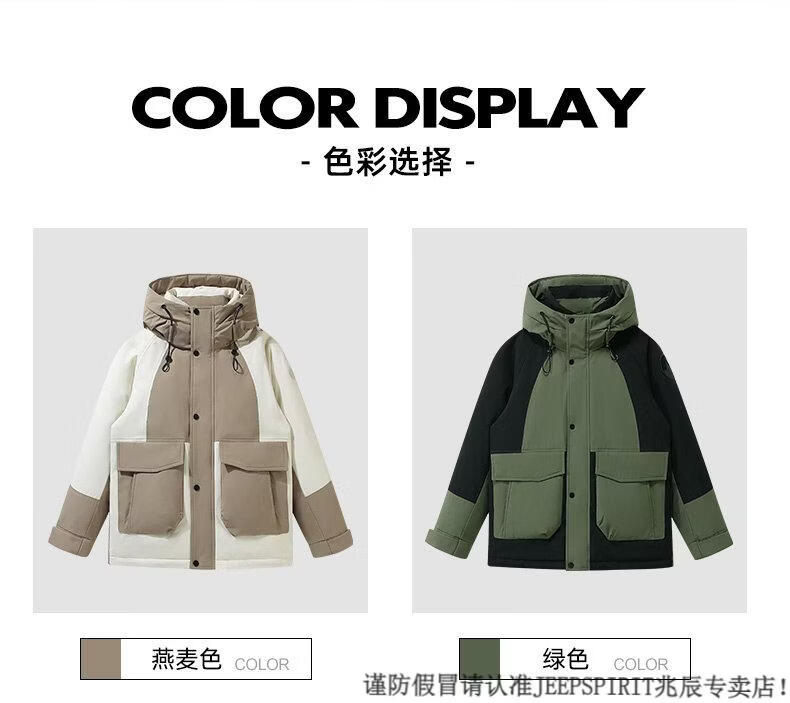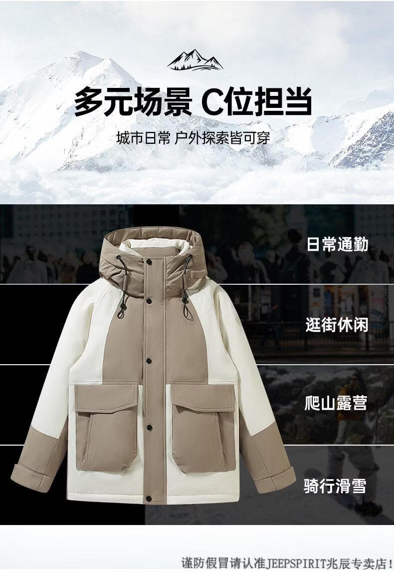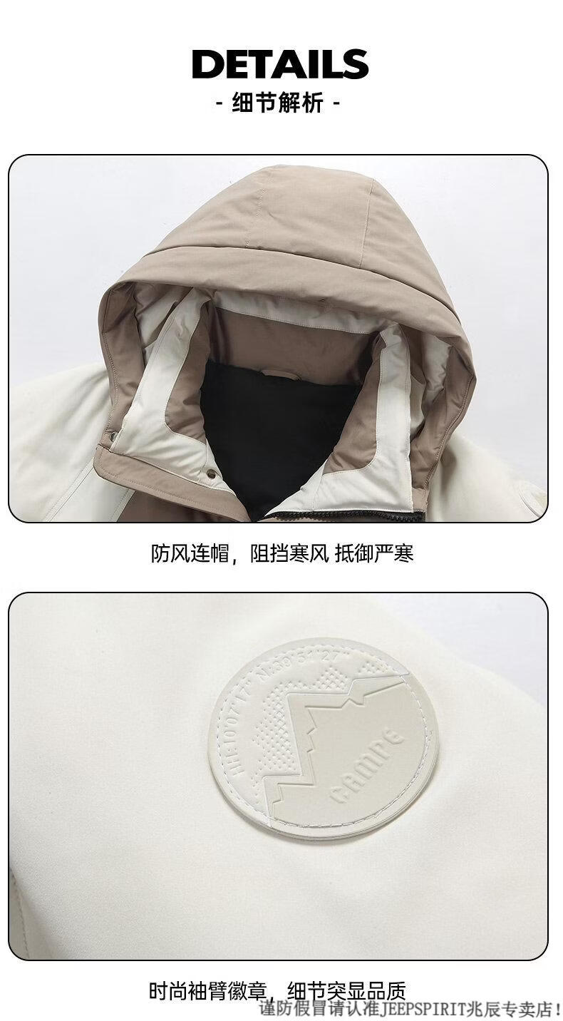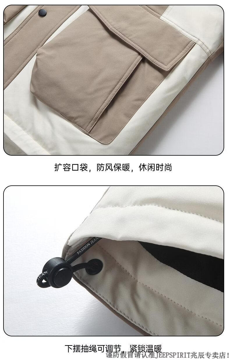 JEEP SPIRIT Down Jacket Men's Winter 2025 New Contrast Color Stitching Hooded Thickened Outdoor Work Jacket Oatmeal Color 5836 M