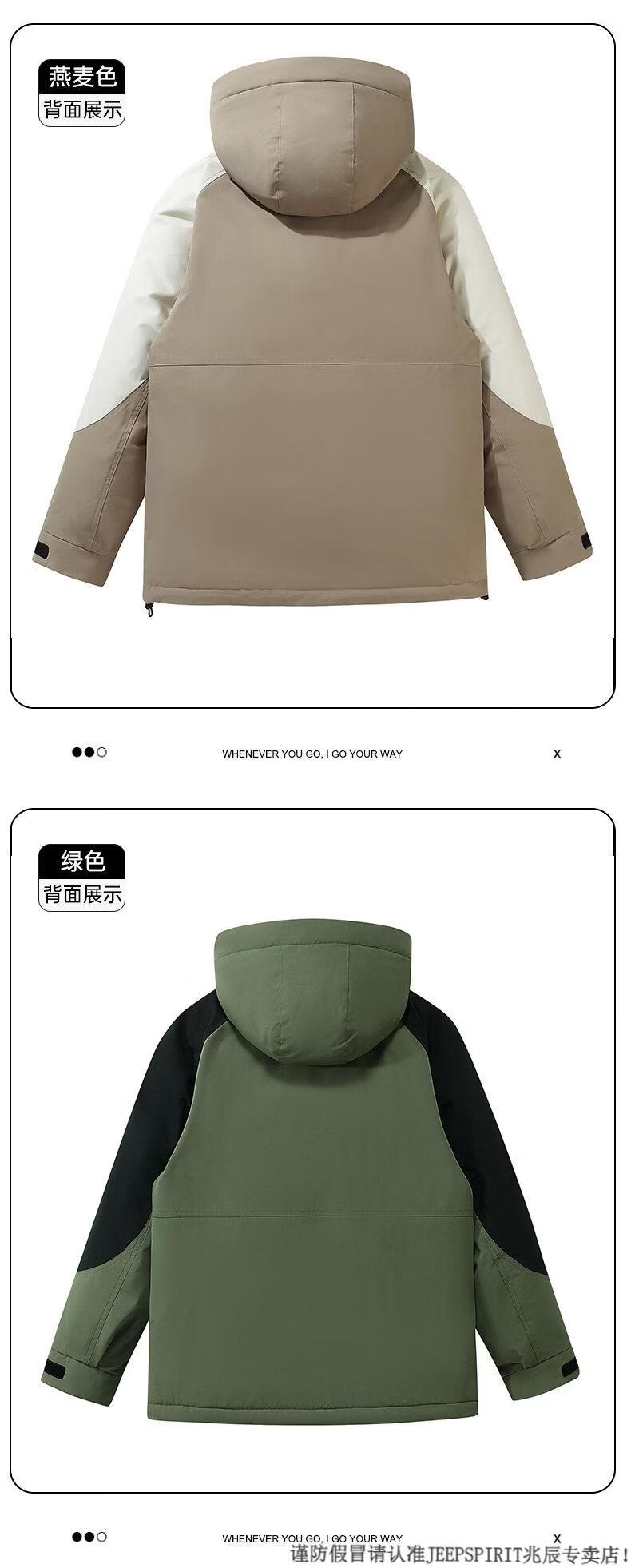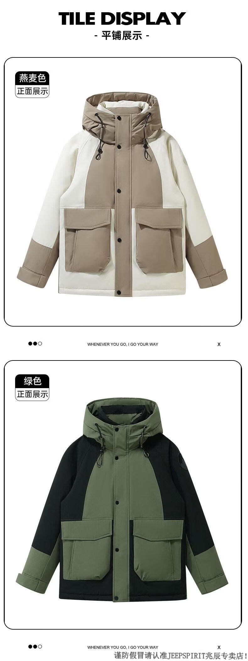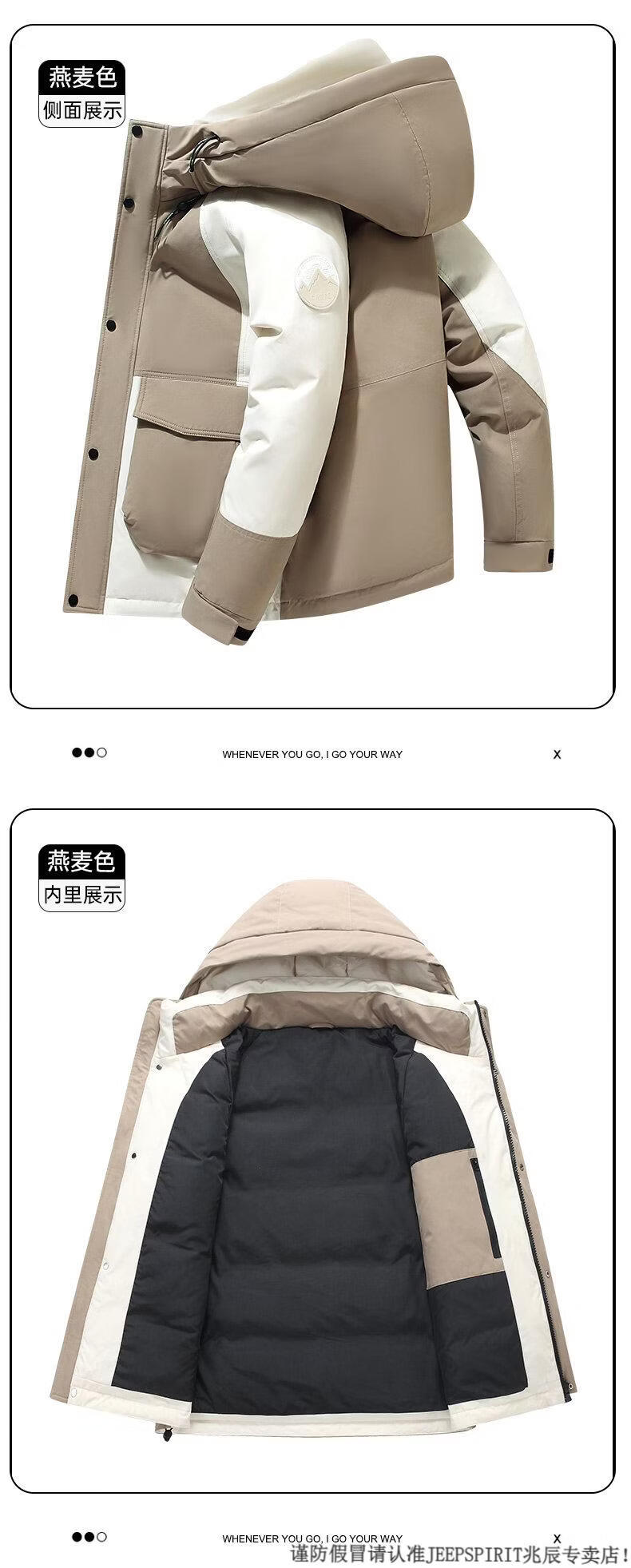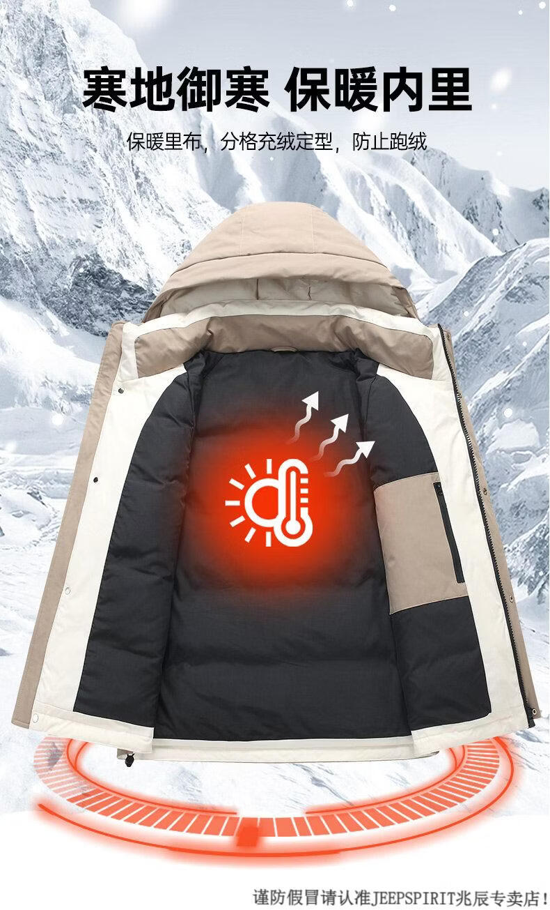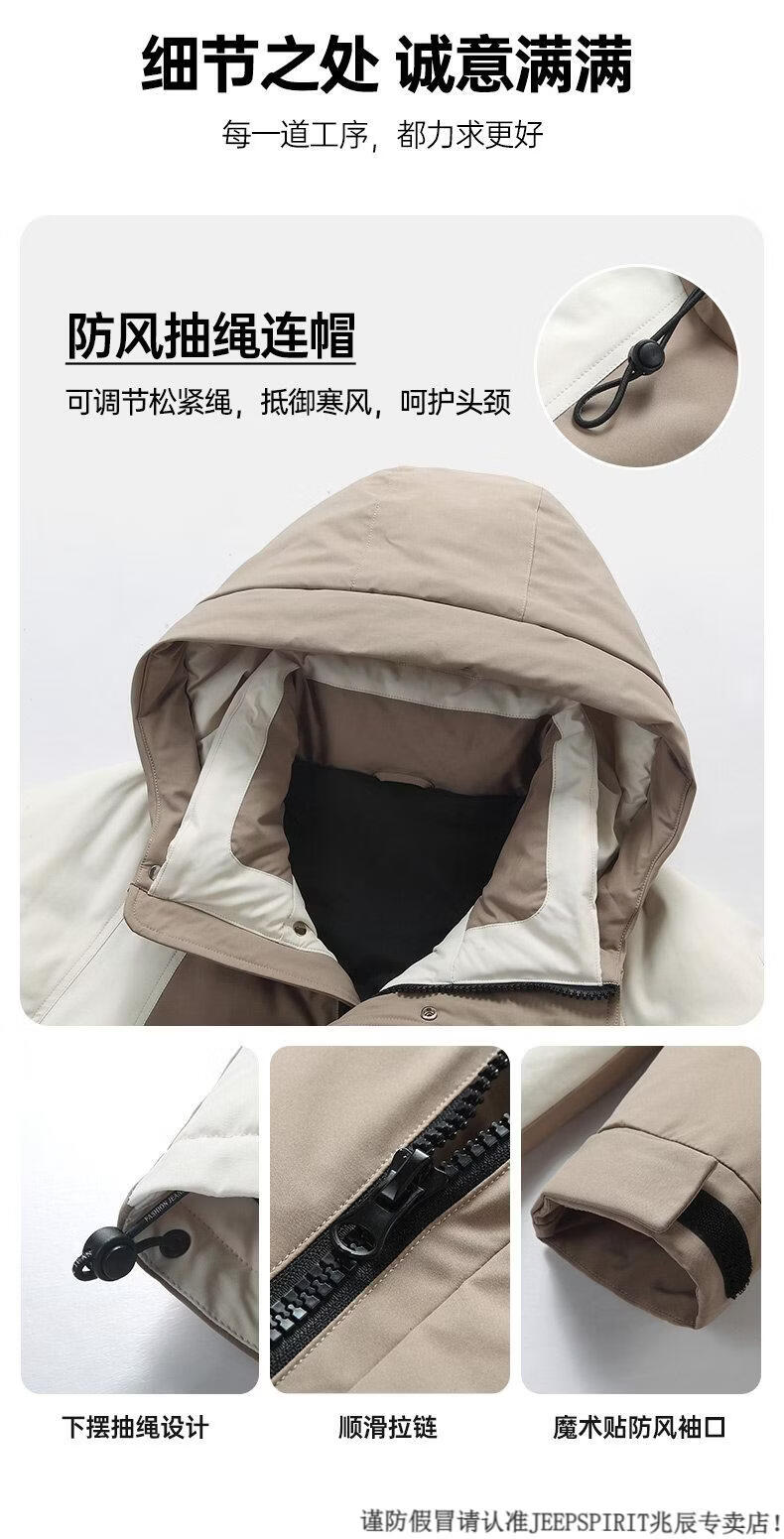 JEEP SPIRIT Down Jacket Men's Winter 2025 New Contrast Color Stitching Hooded Thickened Outdoor Work Jacket Oatmeal Color 5836 M