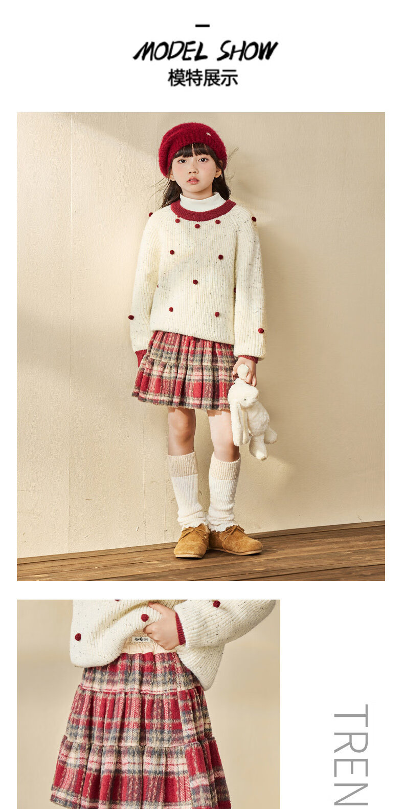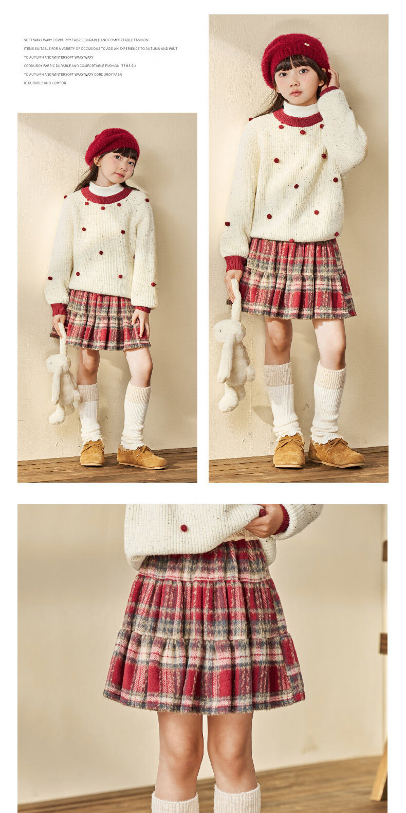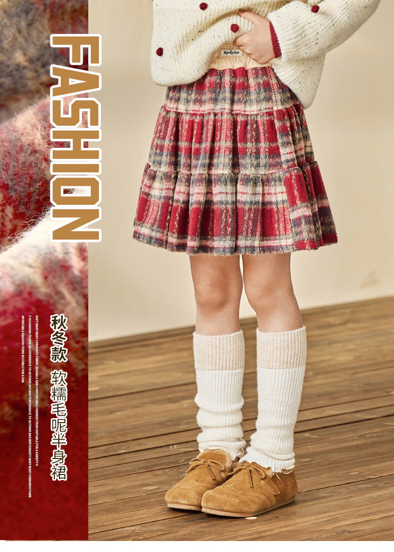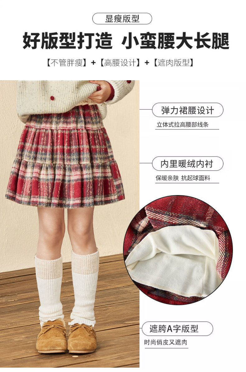 Yoyo one (Yoyo one) girls skirt winter 2026 new children's woolen plaid skirt big children's big beautiful red New Year skirt 6160 red skirt 130 cm