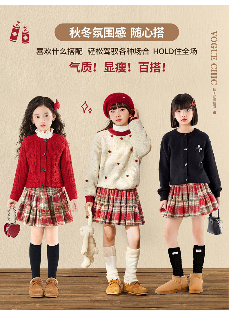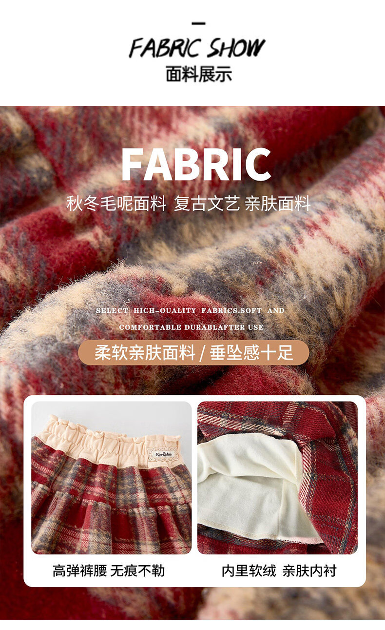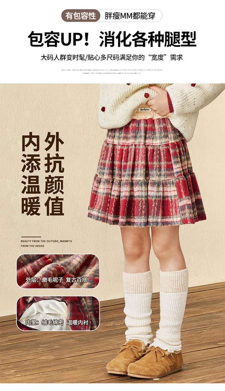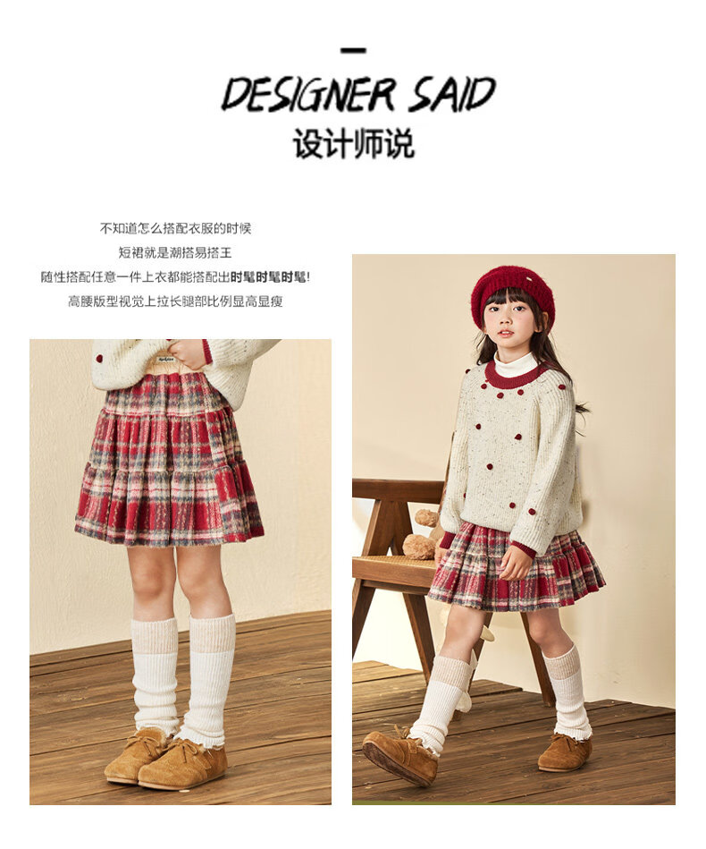 Yoyo one (Yoyo one) girls skirt winter 2026 new children's woolen plaid skirt big children's big beautiful red New Year skirt 6160 red skirt 130 cm