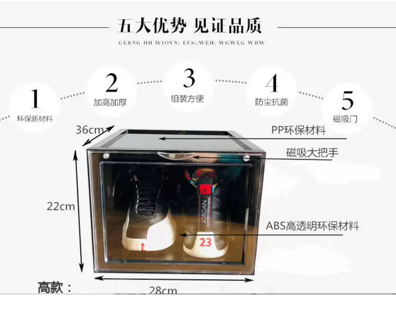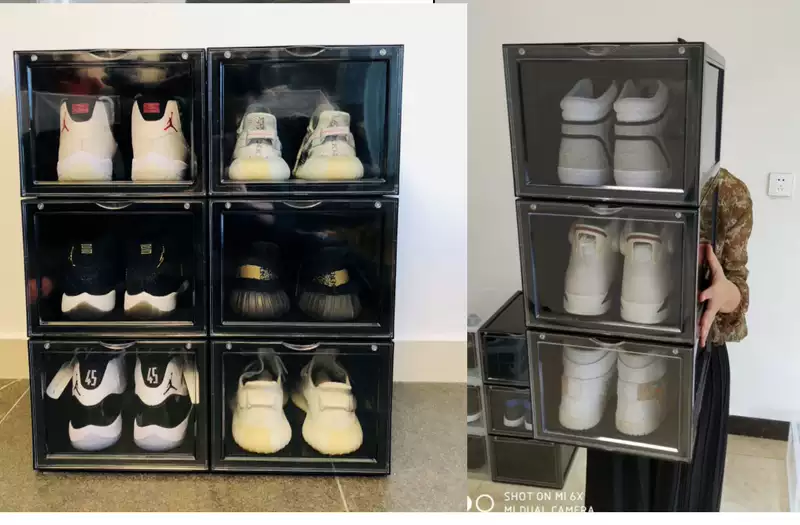 Yusenyi jrs same style transparent large size sneakers magnetic suction door shoe box hard acrylic storage box vertical opening anti-oxidation tide box 6 transparent magnetic suction vertical styles inner height about 19.8cm 36x28x22cm 36 pcs 36x28x22cm