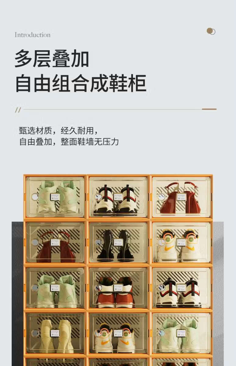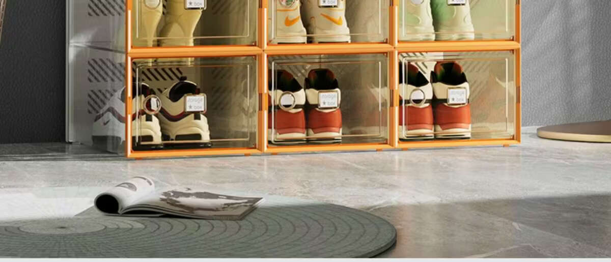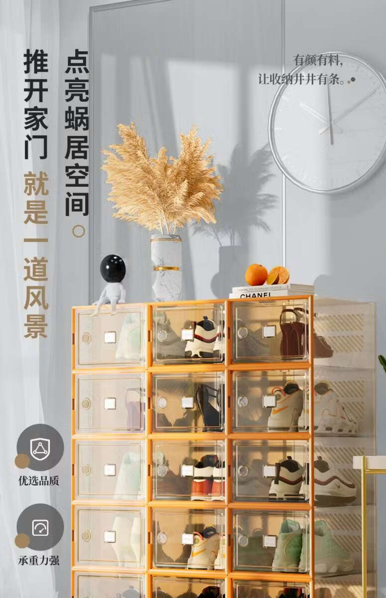 Yusenyi Shoe Box Storage Box Transparent Shoe Cabinet Dormitory Shoes Space-Saving Drawer Folding Sneakers Plastic Shoe Rack High Translucency Can Hold Size 42 Small Orange 8 Pieces 0x0x0cm