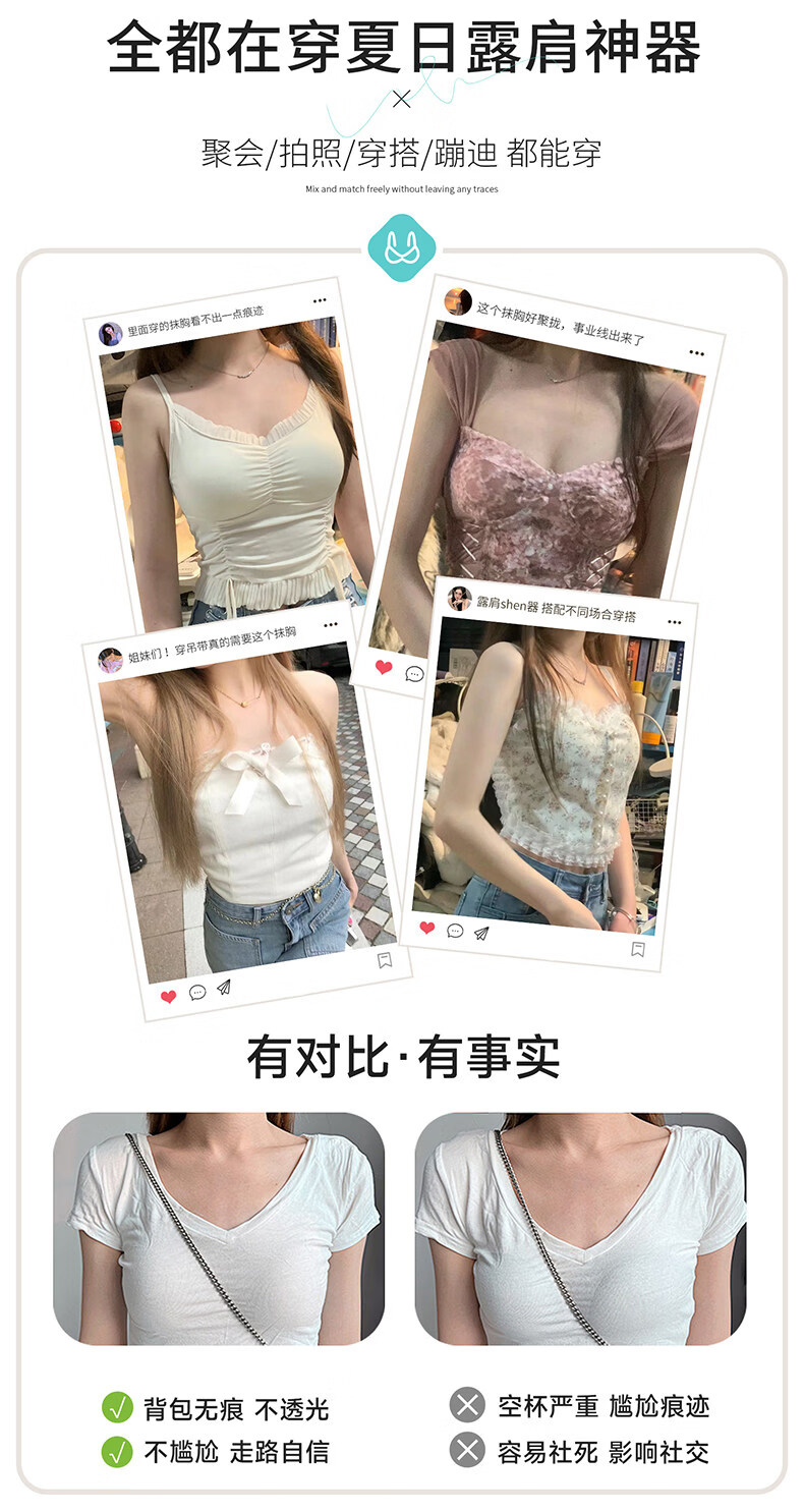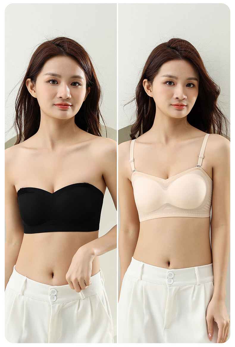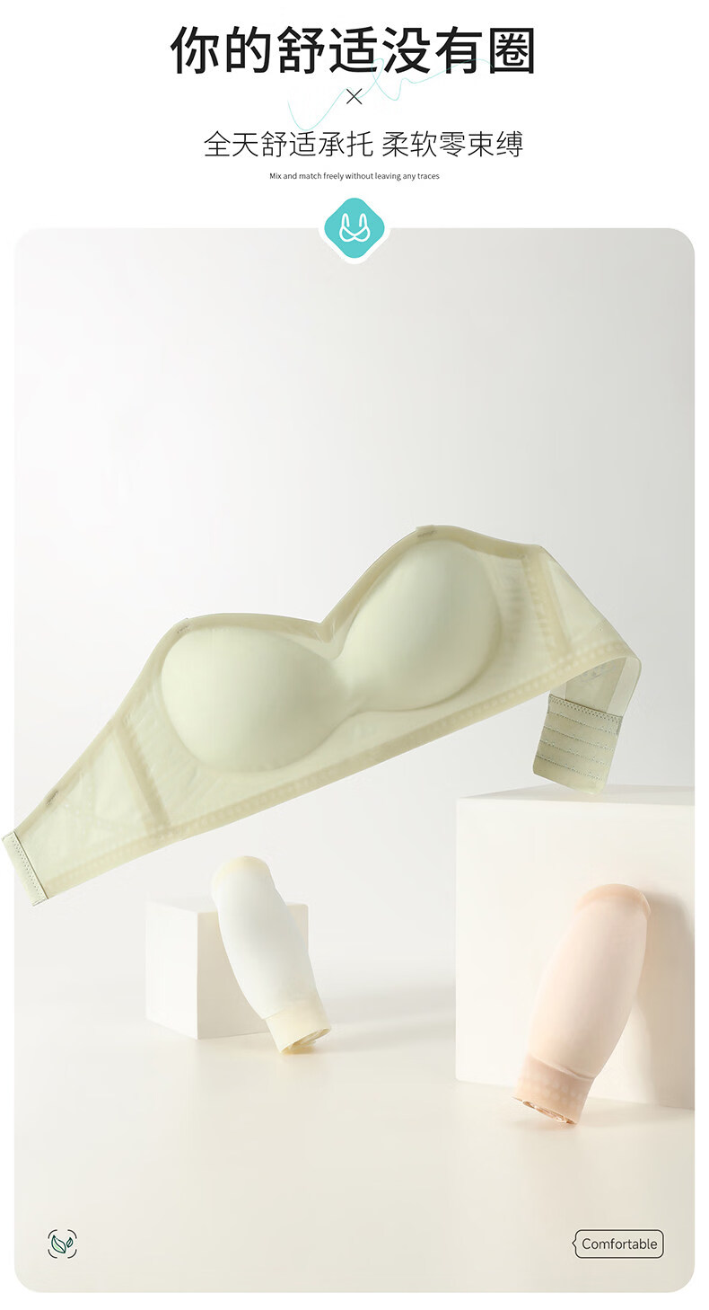Fenton strapless underwear for women, anti-exposure, non-slip, seamless small breasts, push-up invisible chest thin bra, champagne + champagne, seamless ice silk + anti-slip tube top, M 85-105Jin Jin is equal to 0.5 kg