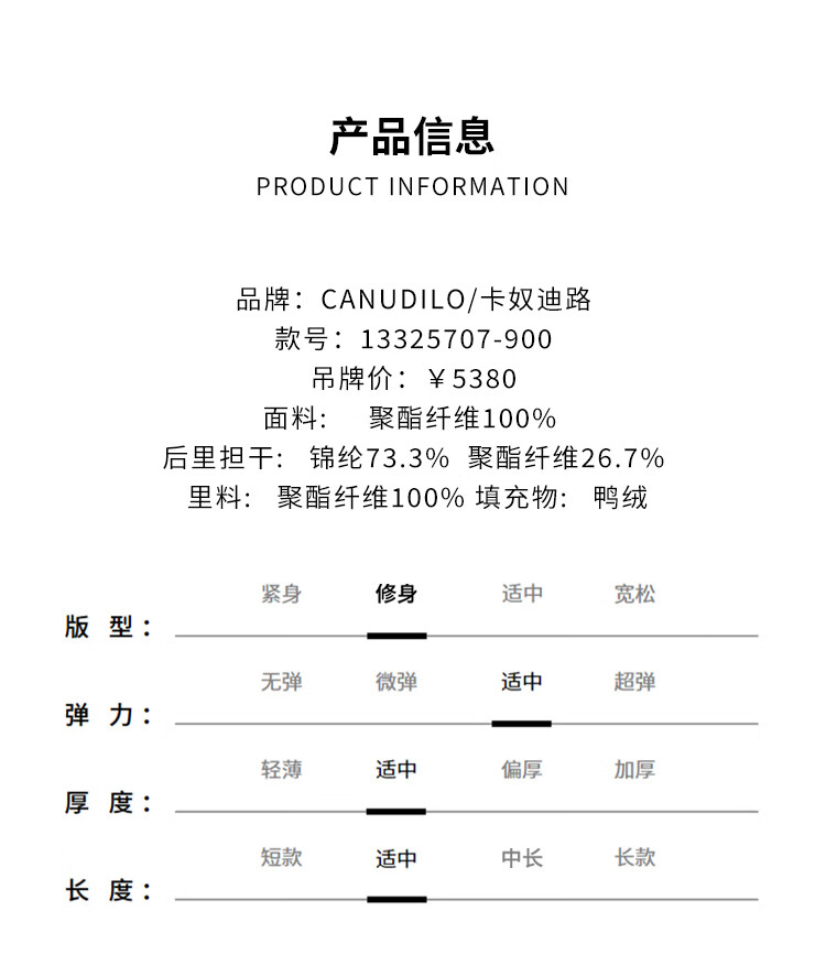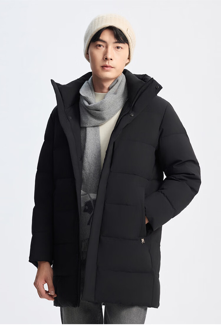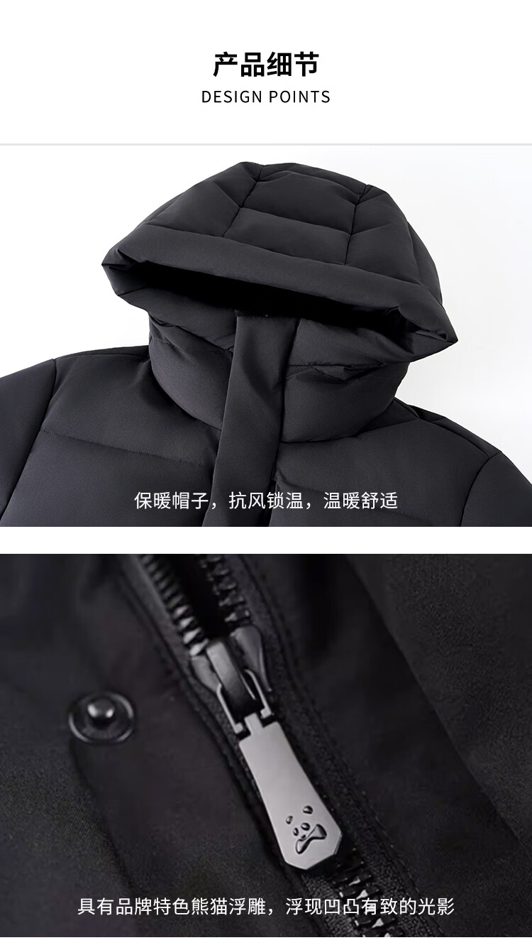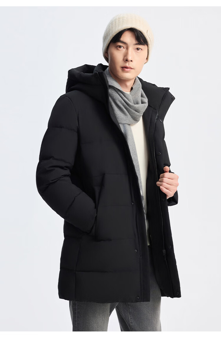CANUDILO winter men's thickened and warm mid-length bread down jacket 13325707-900 black S 46 (165/84B)