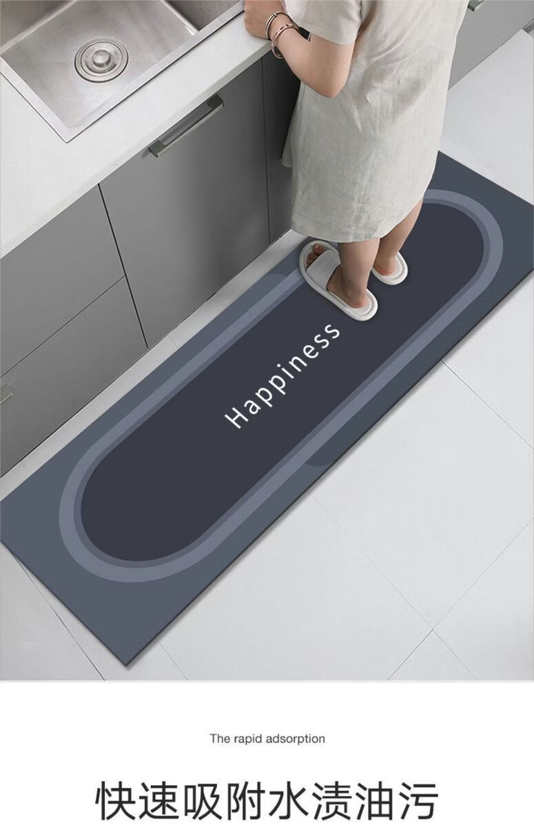 Fantasy Kitchen Floor Mat Wipe-Free Doorstep Dirty-Resistant and Water-Absorbent Floor Mat Deep Sea Blue 140x160cm (Absorbent, Dirty-Resistant and Quick-Drying)