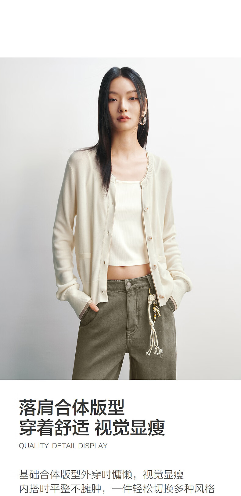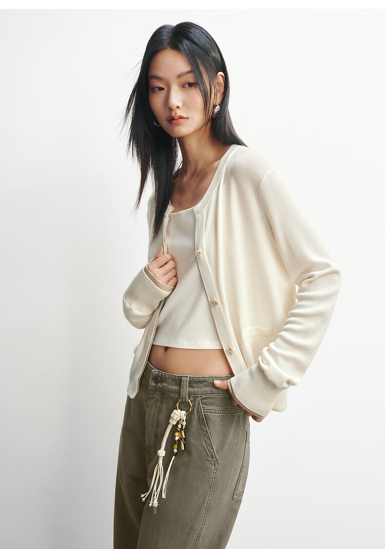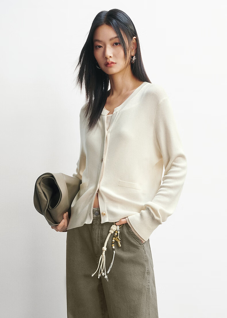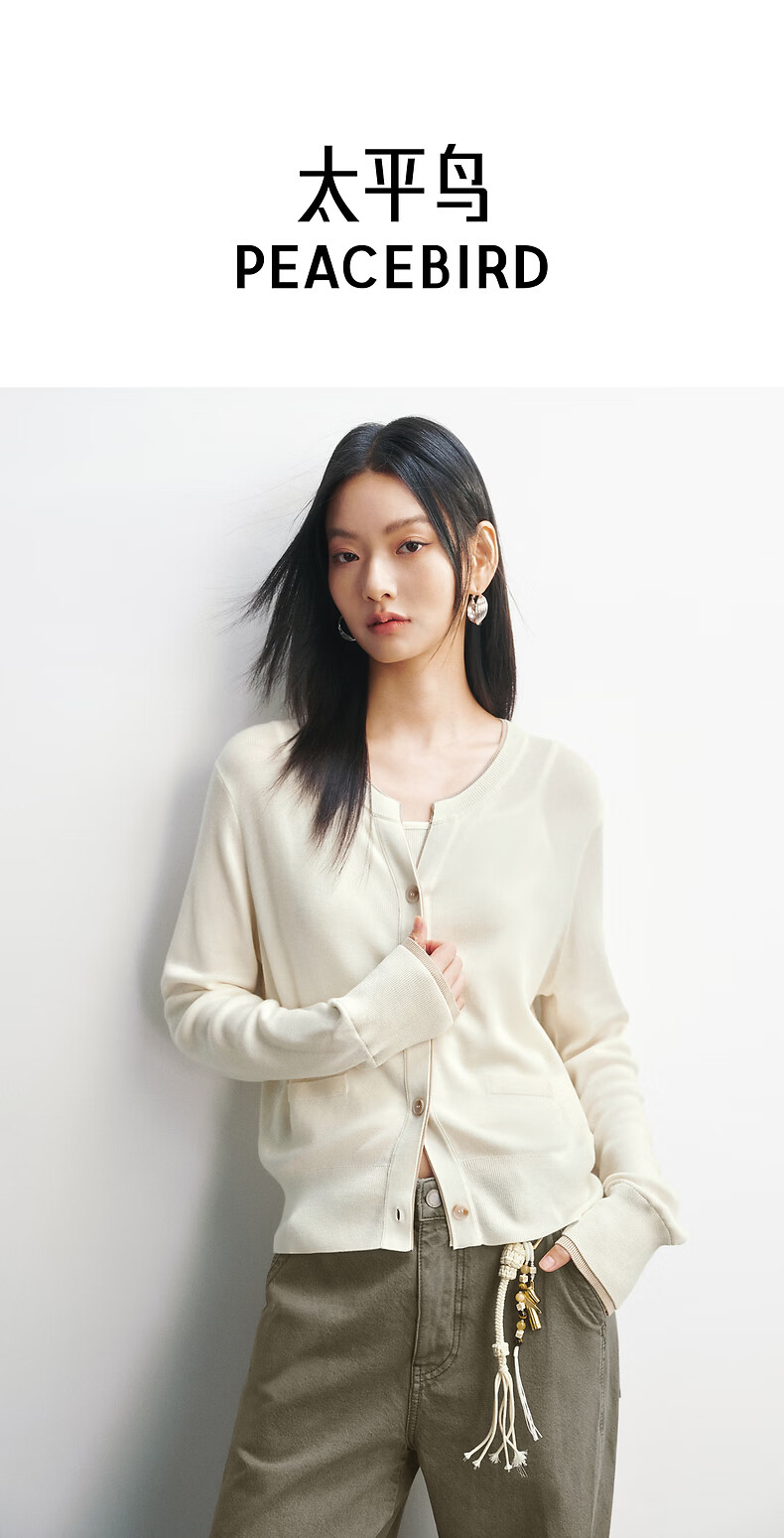 PEACEBIRD Shopping Mall Same Style 26 Spring New Triacetate Contrast Color Fake Two-piece Knitted Cardigan A1EDG1332 Bright White L 165