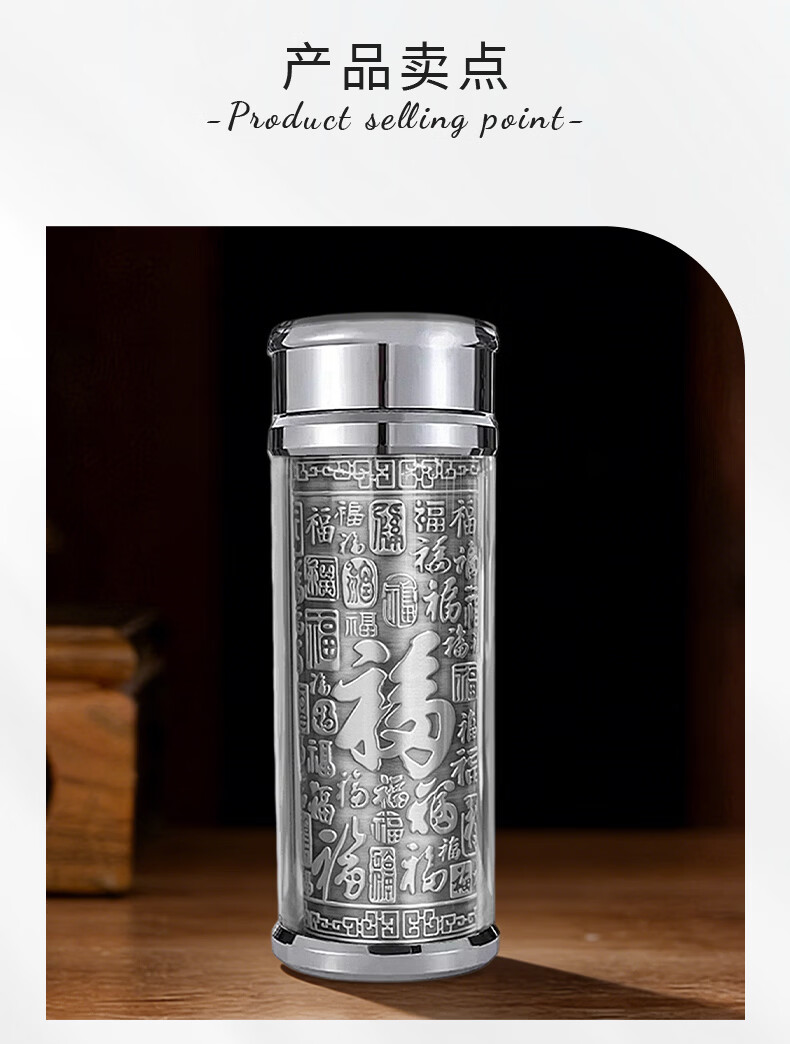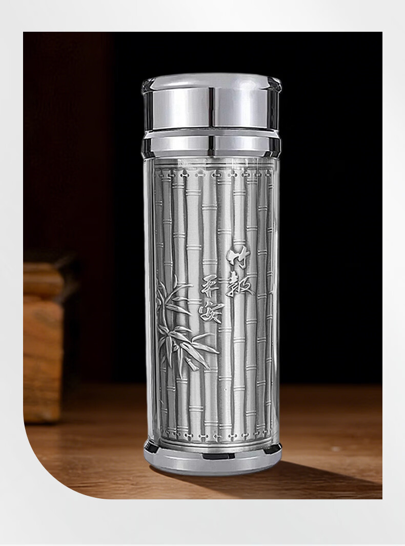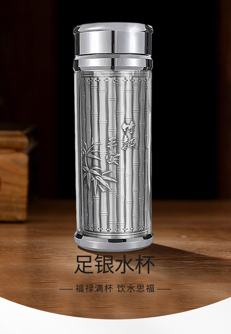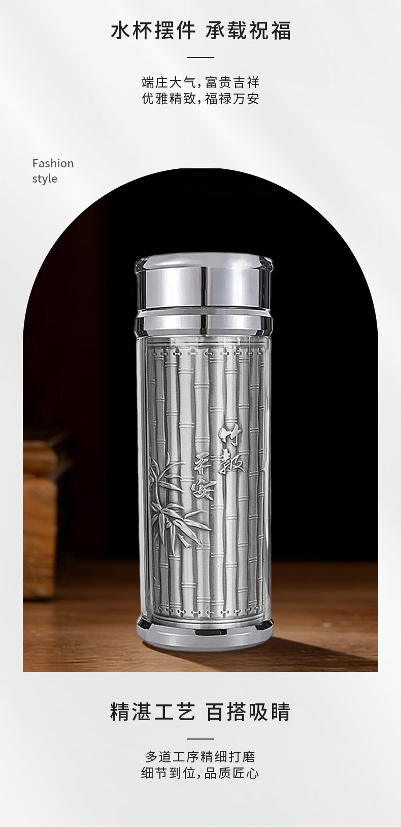 Lao Fengxiang's pure silver embossed Baifu Bamboo, a message of peace and prosperity, instant success, a great journey, a birthday gift for leaders and dad, pure silver embossed Baifu H Cup, about 50g