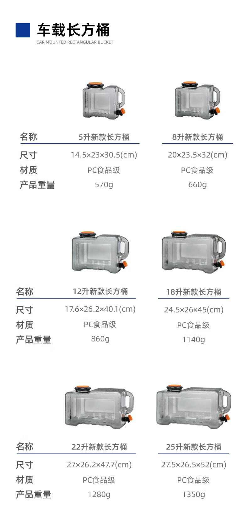 AFC car-mounted rectangular bucket pure water bucket 12 liters outdoor bucket square bucket PC plastic bucket 5L transparent water storage bucket 5 liter rectangular bucket (gray free three-piece set