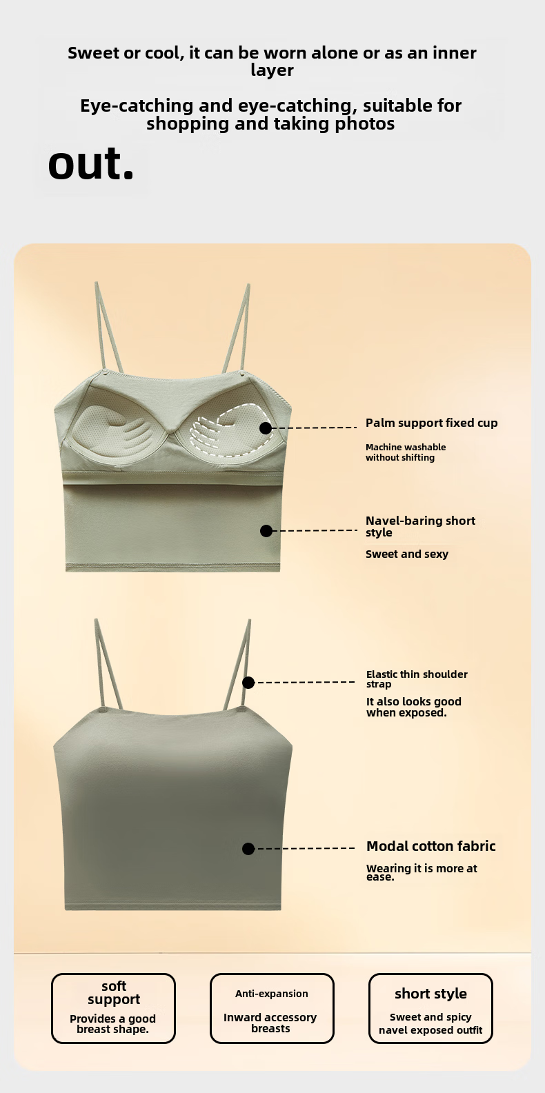 Fenton Fenton Beautiful Back Lingerie Suspenders Women's Padded Tank Top Bra Tube Top All In One Wear Outer White + Black 7A M (75-95Jin Jin equals 0.5kg)